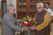 | Caption: | The President of India, Shri Pranab Mukherjee meeting with the Governor, Uttar Pradesh, Shri Ram Naik, at Rashtrapati Bhavan, in New Delhi on June 09, 2015. |