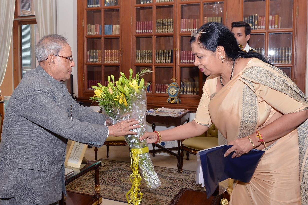 | Caption: | The President of India, Shri Pranab Mukherjee meeting with the President, Indian Cooperative Network for Women, Dr. Nandini Azad, at Rashtrapati Bhavan, in New Delhi on June 18, 2015. |