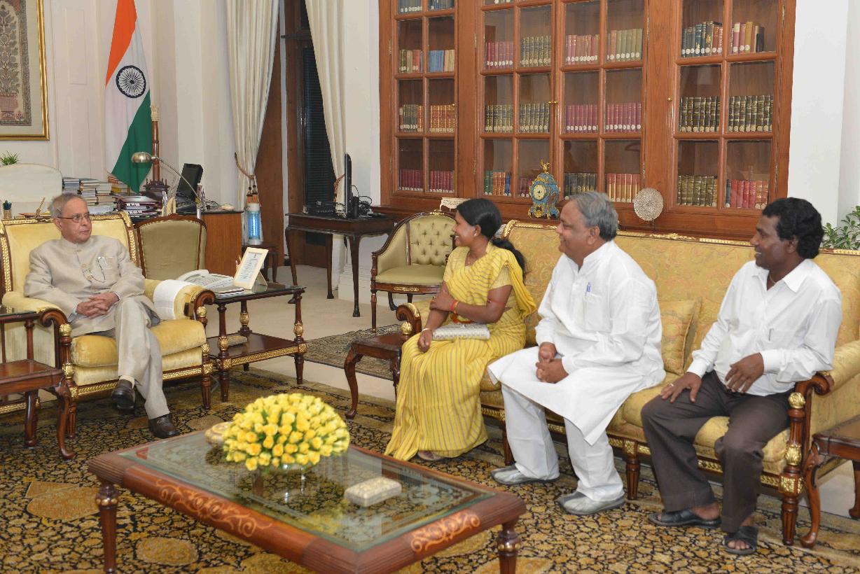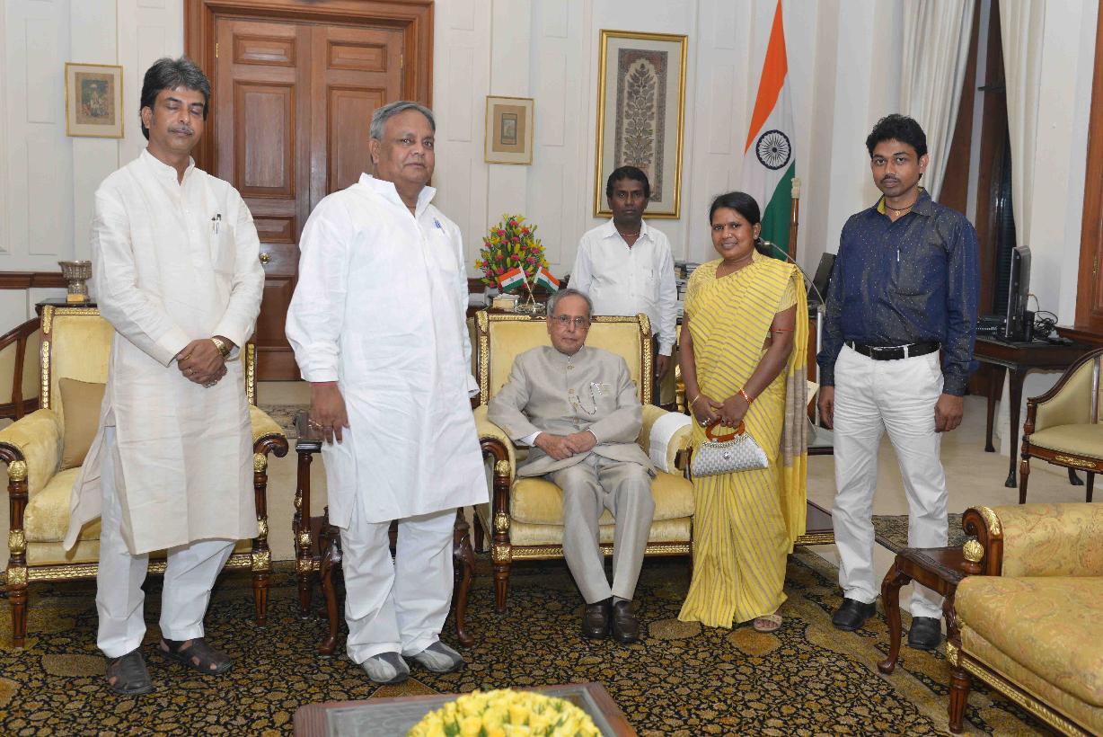 | Caption: | The President of India, Shri Pranab Mukherjee meeting with Shri Nepal Mahato, at Rashtrapati Bhavan, in New Delhi on June 24, 2015. |