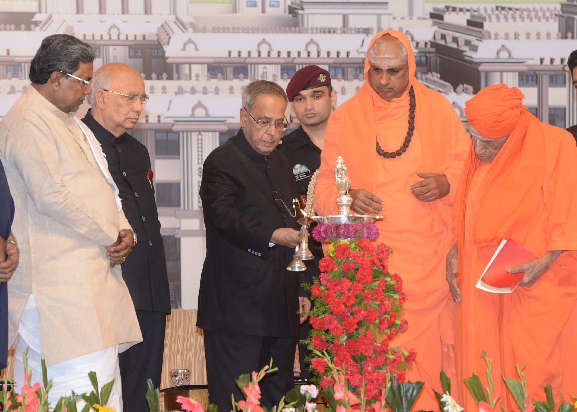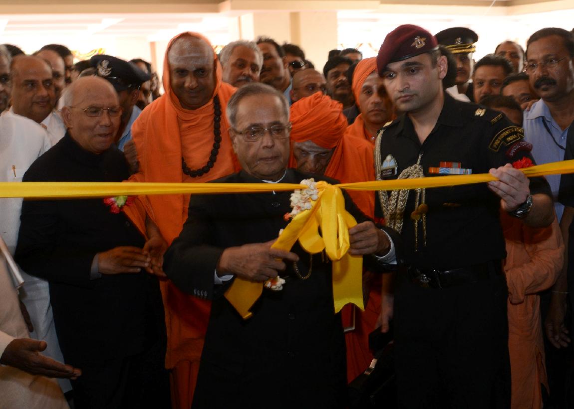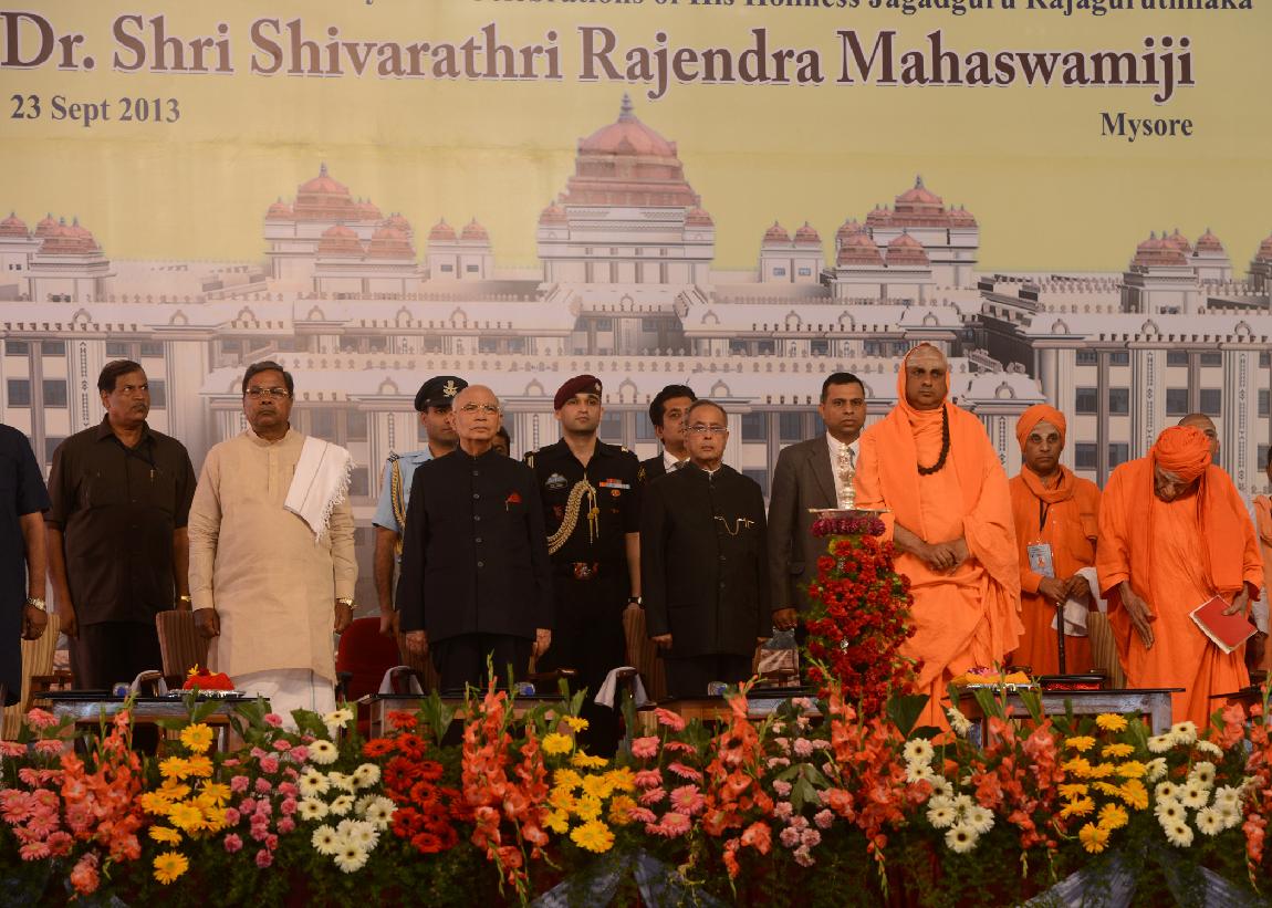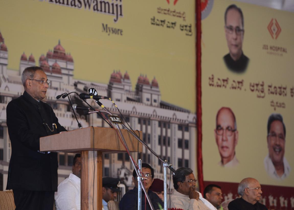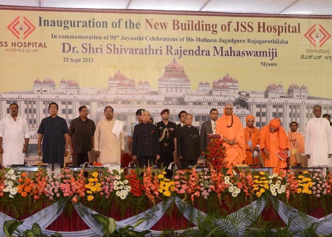 | Caption: | The President of India, Shri Pranab Mukherjee inaugurating the New hospital Building of Jagadguru Sri Shiva-Rathreeshwara (JSS) Maha-vidya-peetha at Mysore in Karnataka on Sep 23, 2013 |