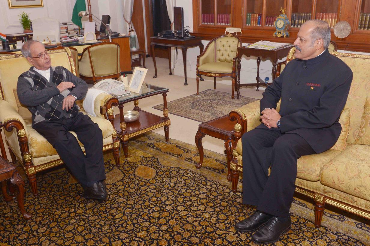 | Caption: | The President of India, Shri Pranab Mukherjee meeting with Shri Sujan R. Chinioy, Ambassador of India to Japan, at Rashtrapati Bhavan on December 14, 2015. |