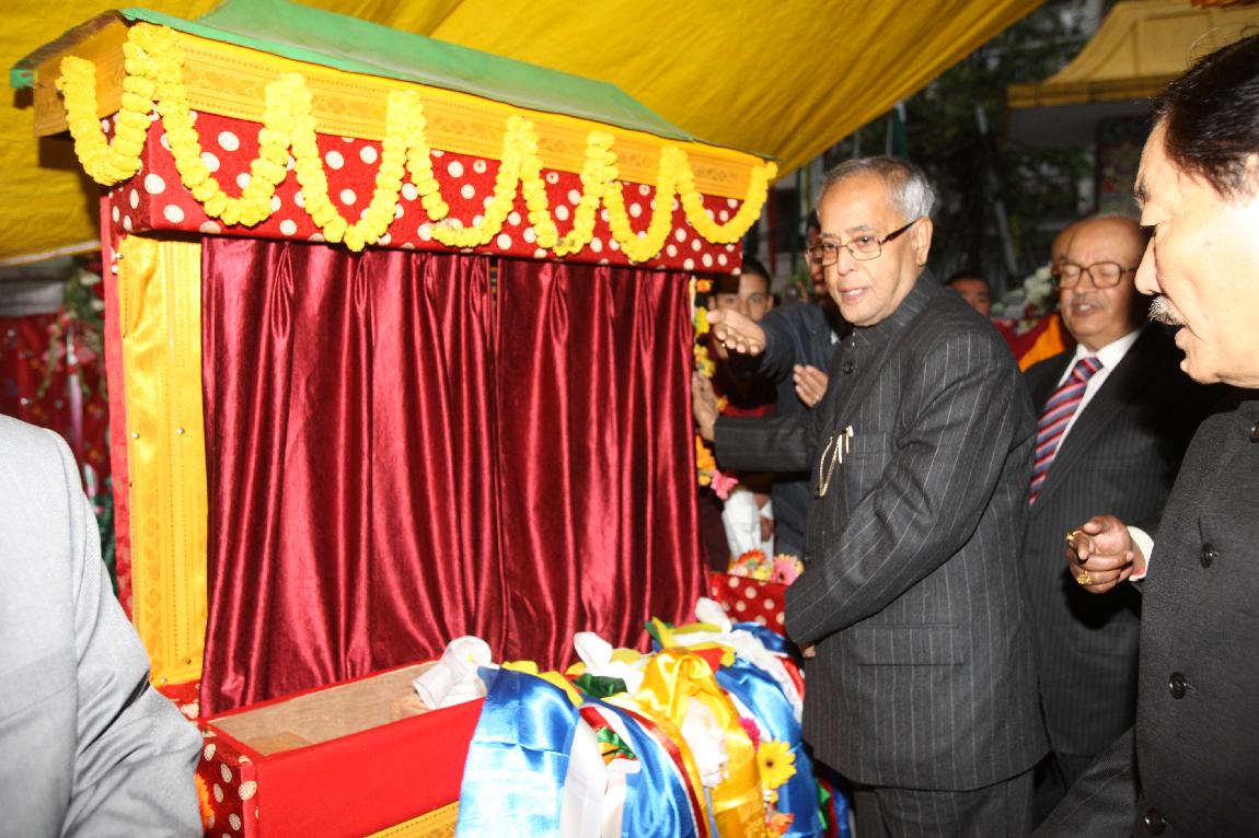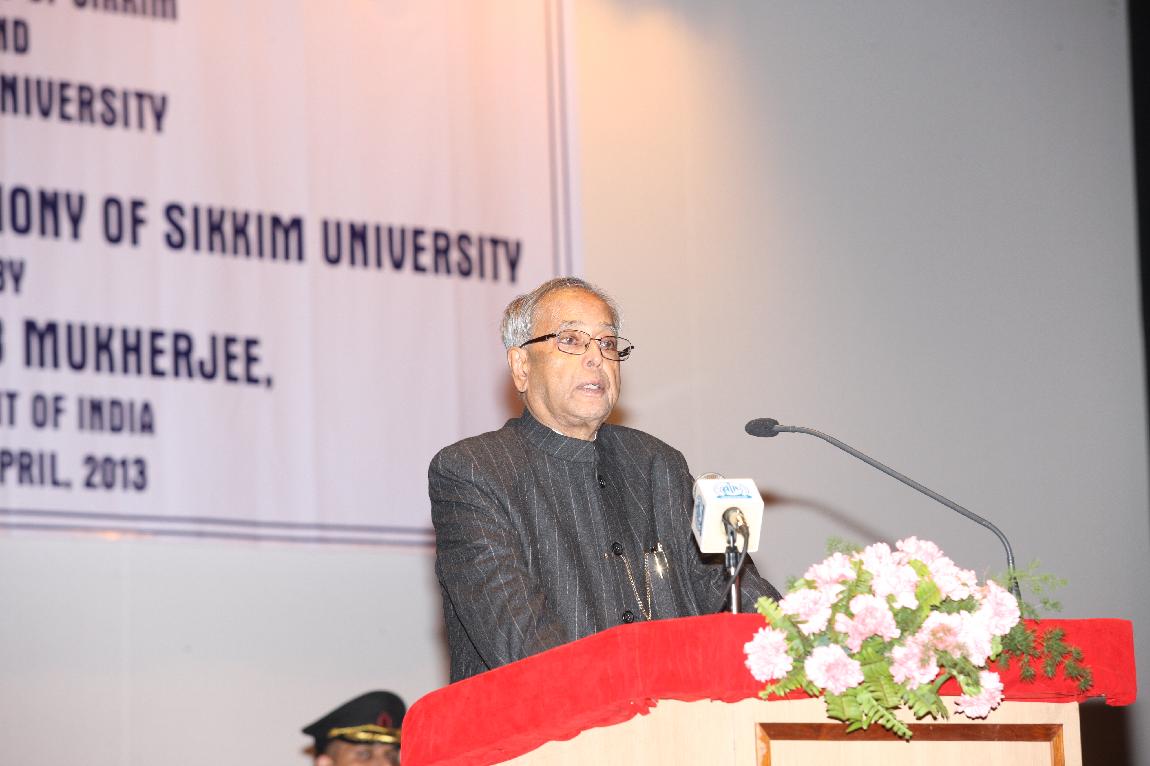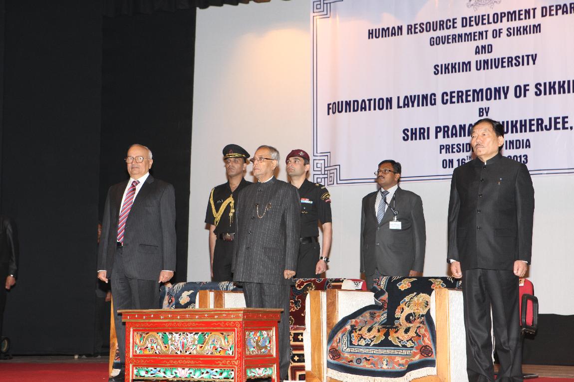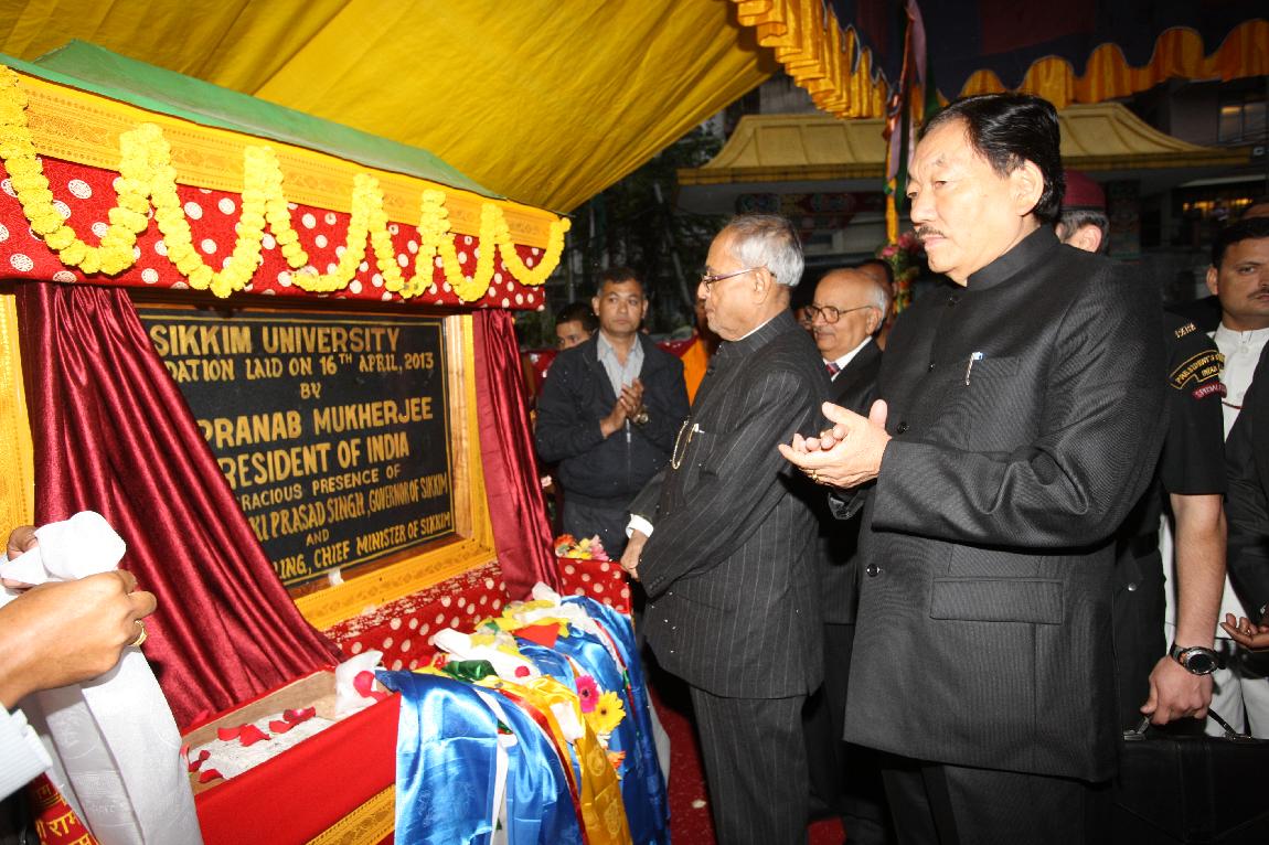 | Caption: | The President of India, Shri Pranab Mukherjee Laying the Foundation Stone of the Sikkim University on April 16, 2013 |