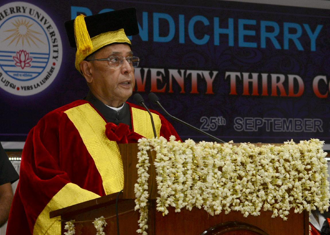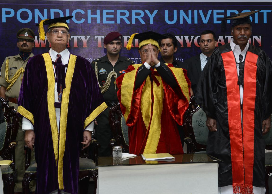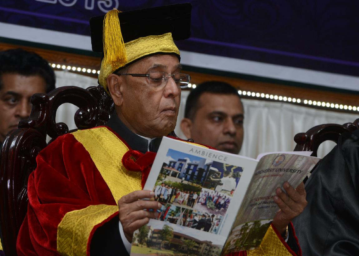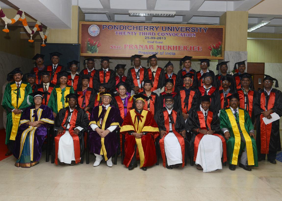 | Caption: | The President of India, Shri Pranab Mukherjee during the 23rd Annual Convocation of Pondicherry University at Puducherry on Sep 25, 2013 |