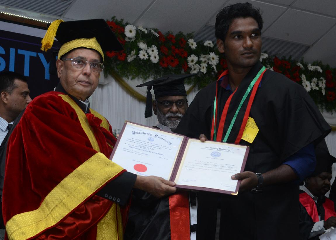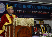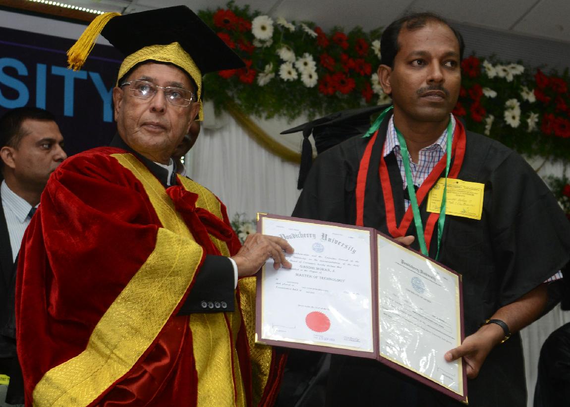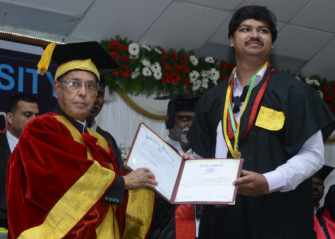 | Caption: | The President of India, Shri Pranab Mukherjee during the 23rd Annual Convocation of Pondicherry University at Puducherry on Sep 25, 2013 |