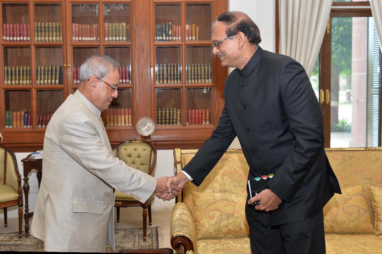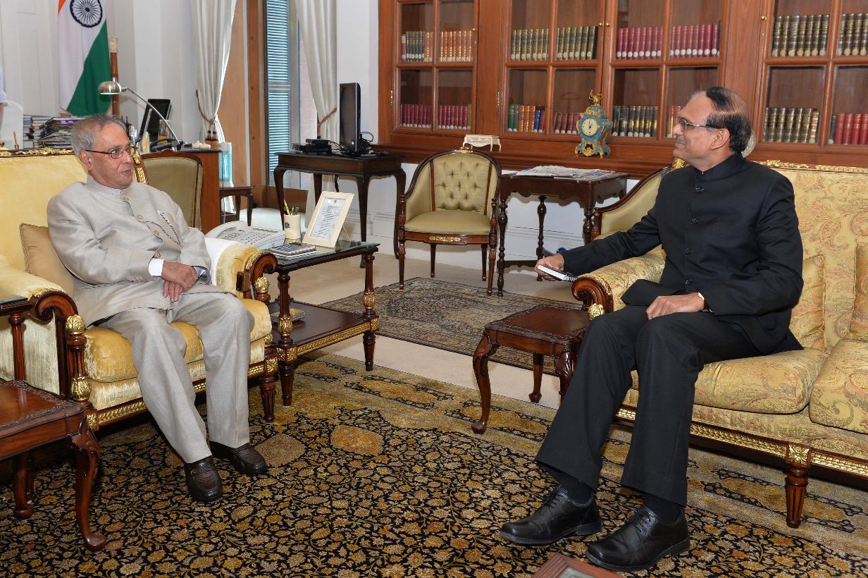 | Caption: | The Defence Secretary, Shri G. Mohan Kumar meeting the President of India, Shri Pranab Mukherjee, at Rashtrapati Bhavan, in New Delhi on June 17, 2015. |
