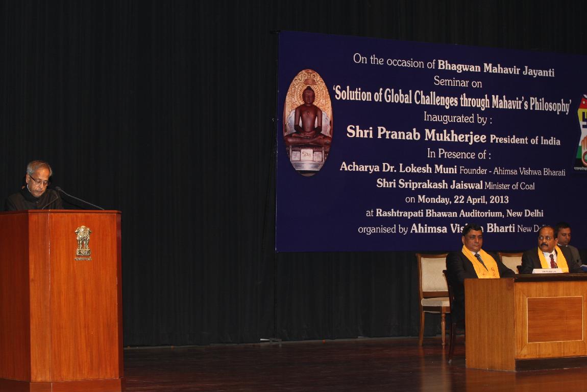 | Caption: | The President of India, Shri Pranab Mukherjee at Inauguration of Seminar on Mahavir Jayanti on April 22, 2013 |
