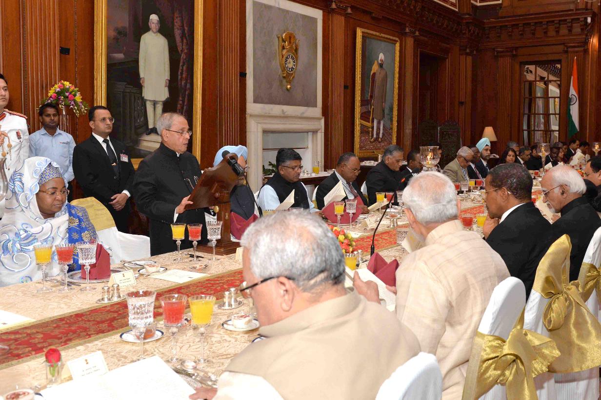 | Caption: | The President of India, Shri Pranab Mukherjee at the Banquet, hosted in honour of the President of the United Republic of Tanzania, Mr. Jakaya Kikwete and Mrs. Salma Kikwete, at Rashtrapati Bhavan, in New Delhi on June 19, 2015. |