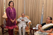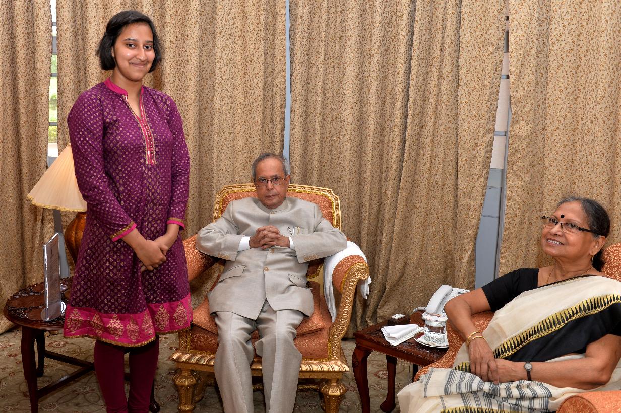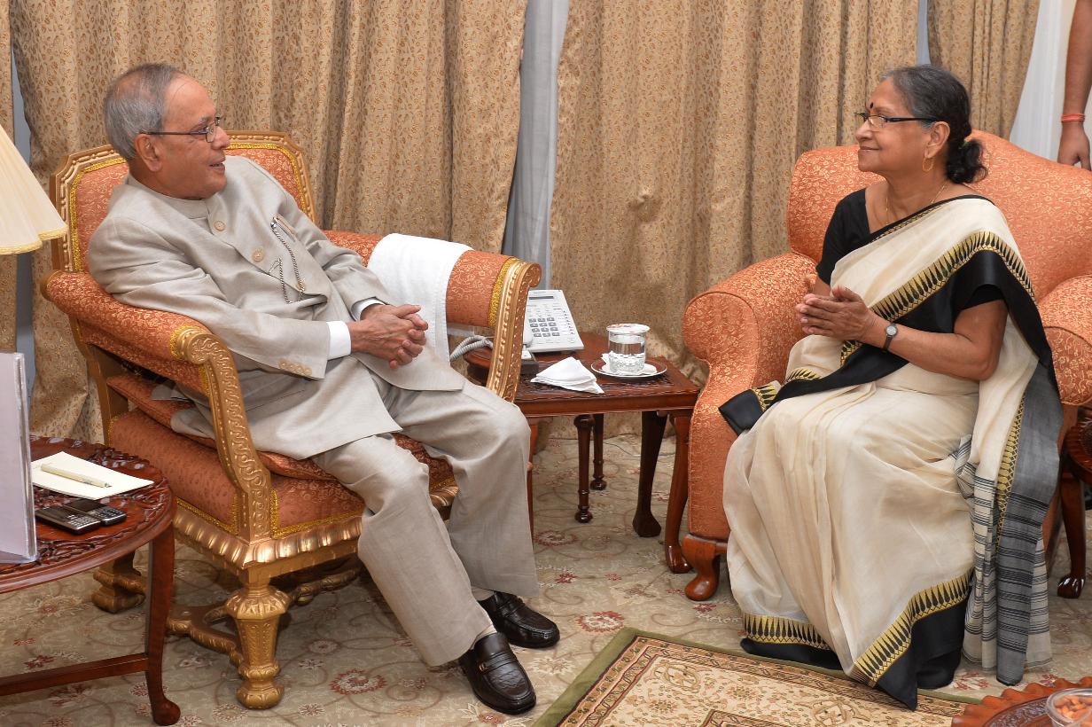 | Caption: | The President of India, Shri Pranab Mukherjee meeting with Smt. Sumitra Ghosh, at Rashtrapati Nilayam, Bolarum, in Secunderabad on July 04, 2015. |