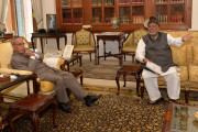 | Caption: | The President of India, Shri Pranab Mukherjee meeting the former Union Minister of Railways, Shri C.K. Jaffer Sharief, at Rashtrapati Bhavan, in New Delhi on July 13, 2015. |