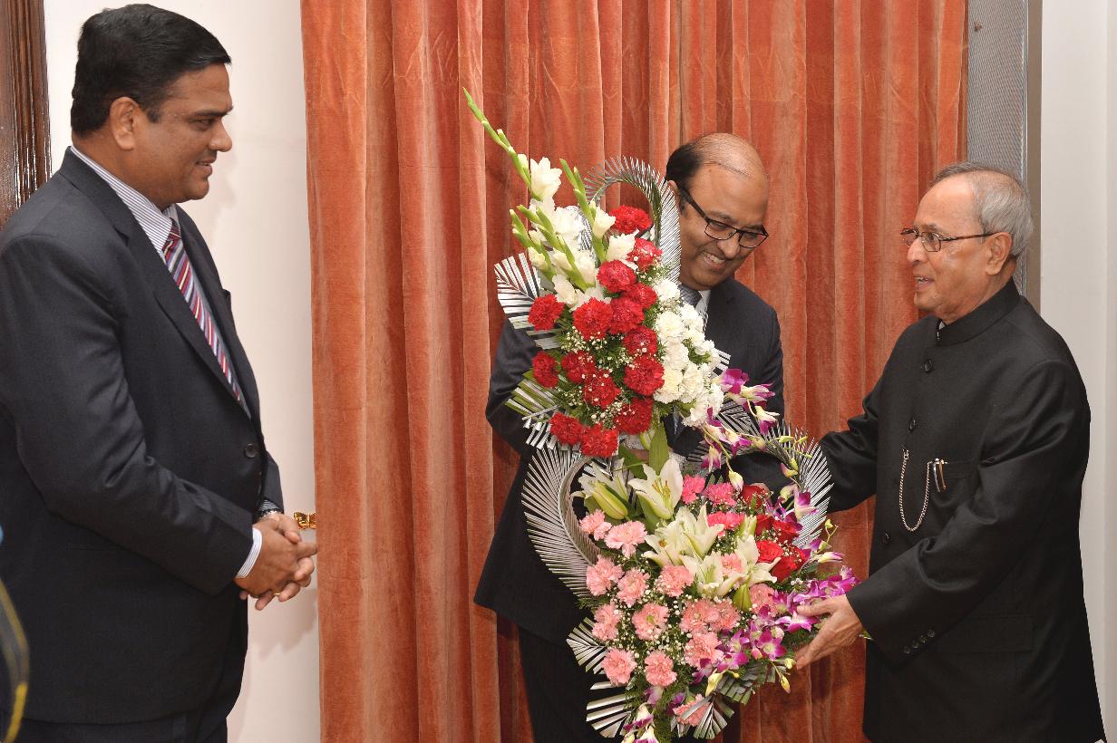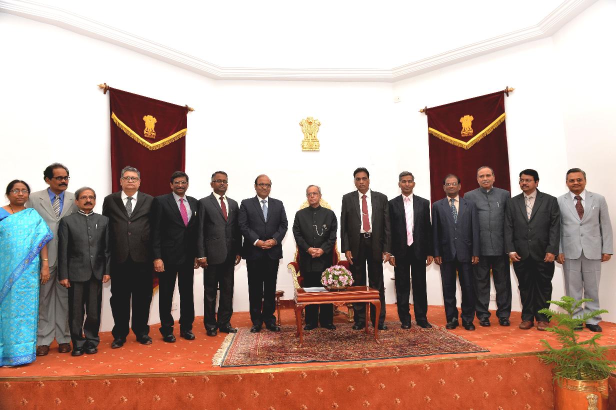 | Caption: | The President of India, Shri Pranab Mukherjee meeting with Shri Justice Dilip B. Bhosale, Acting Chief Justice of Andhra Pradesh High Court and others, at Rashtrapati Nilayam, Bolarum, in Secunderabad on July 03, 2015. |