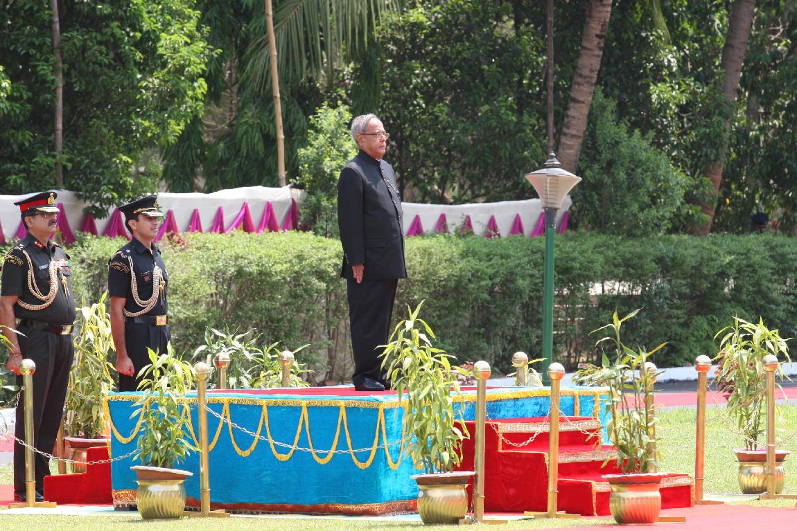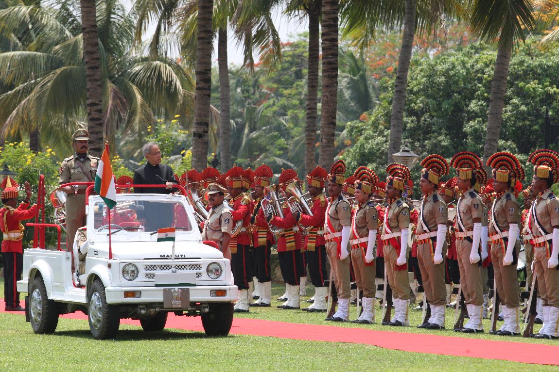 | Caption: | The President of India, Shri Pranab Mukherjee Inspecting Guard of Honor at Raj Bhavan on April 25, 2013 |