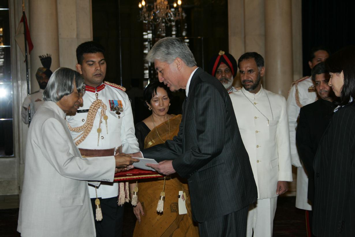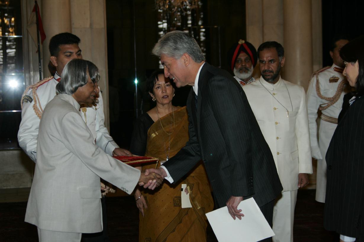 | Caption: | The Ambassador-Designate of Guatemala to India, HE Mr Arturo Duarte Ortiz presenting his credentials to the President of India, Dr A P J Abdul Kalam at the Ashok Hall of Rashtrapati Bhavan in New Delhi on April 26, 2005 |