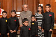 | Caption: | The President of India, Shri Pranab Mukherjee meeting Shri Mahita Prasad Caddell and others, at Rashtrapati Bhavan, in New Delhi on July 13, 2015. |