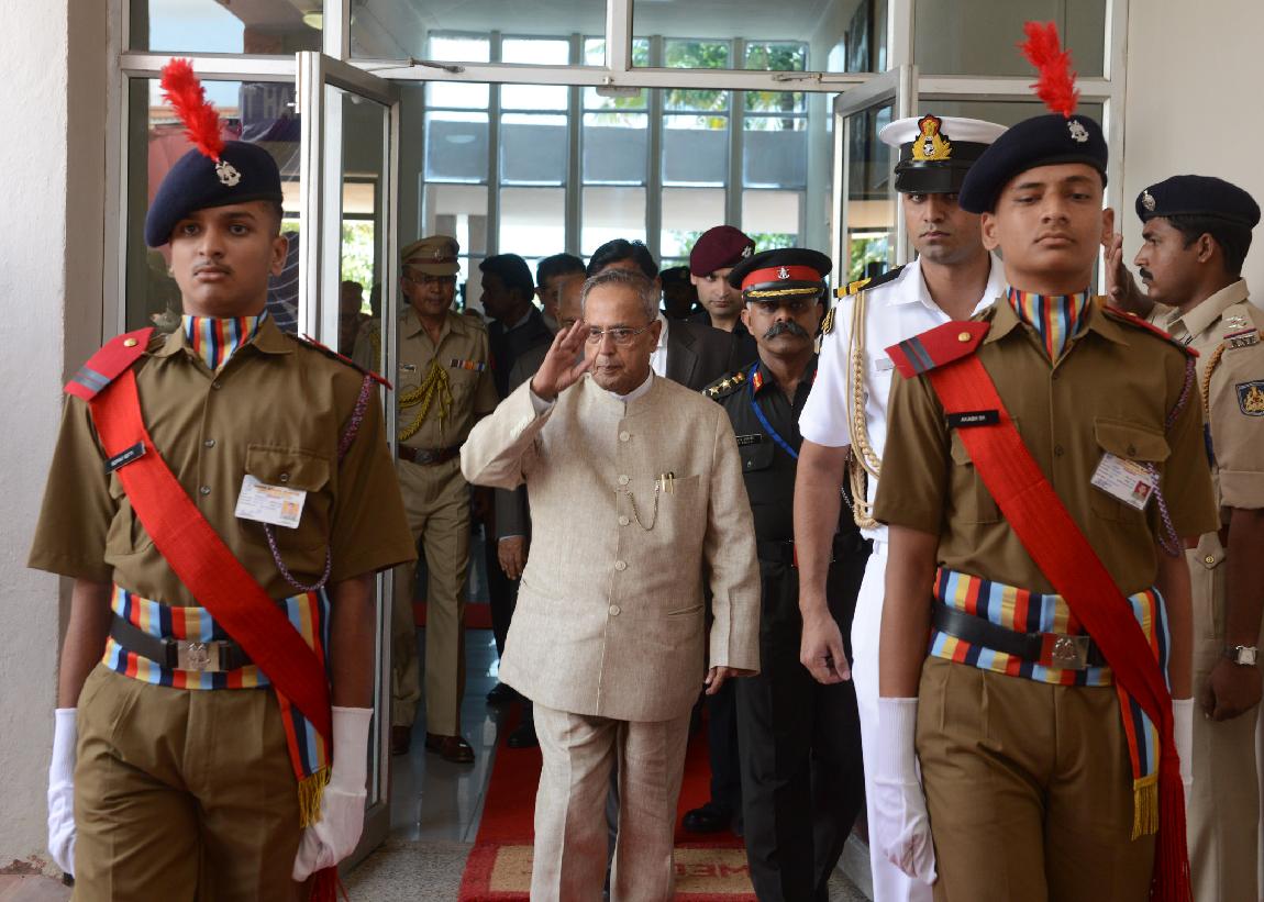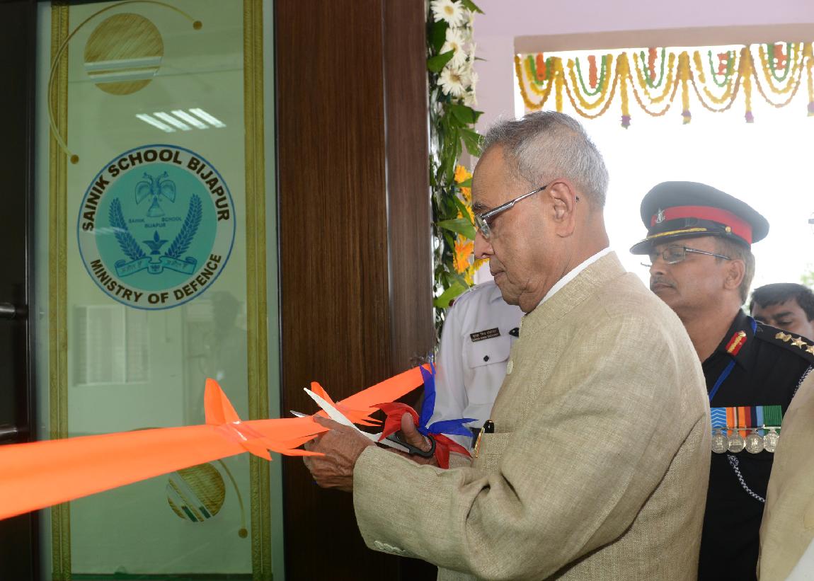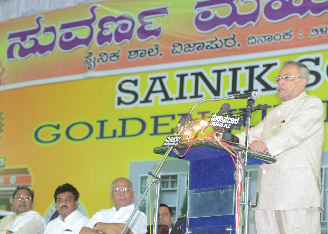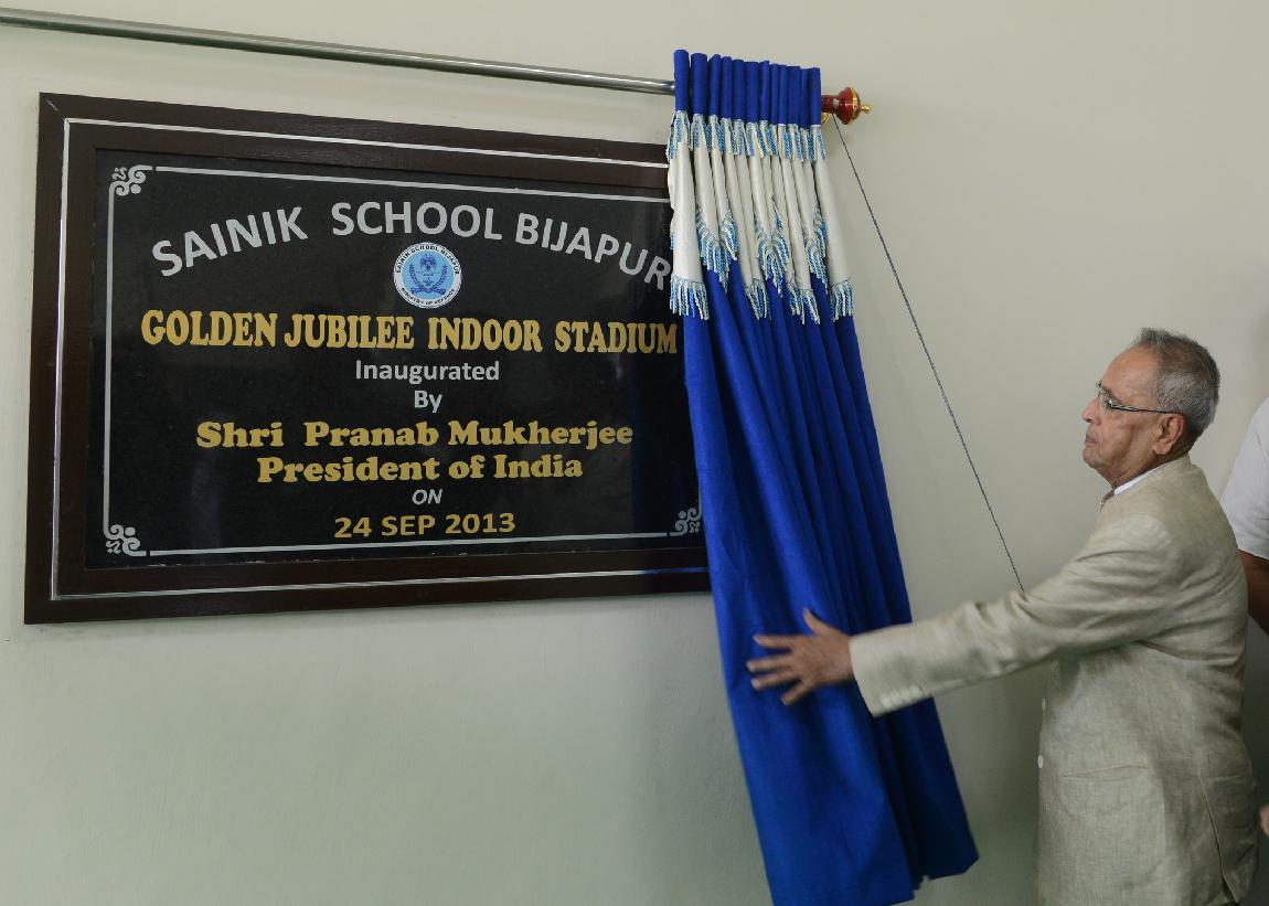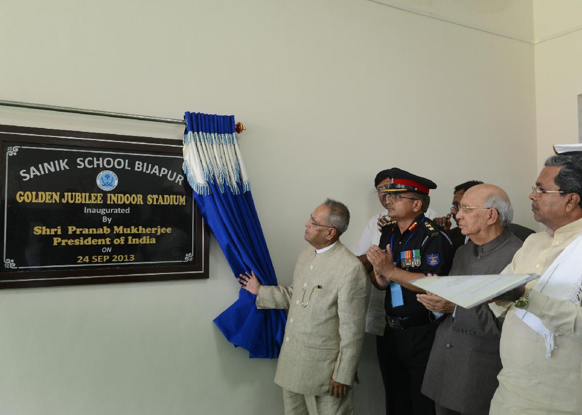 | Caption: | The President of India, Shri Pranab Mukherjee during the inauguration of the Golden Jubilee Celebrations of Sainik School at Bijapur in Karnataka on Sep 24, 2013 |