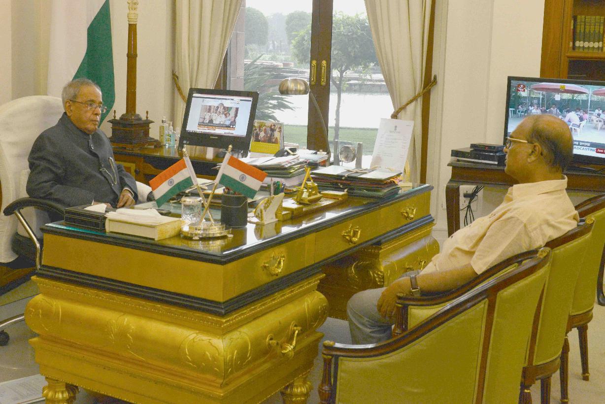 | Caption: | The President of India, Shri Pranab Mukherjee meeting with Shri Pradip Bhattacharya, MP (RS), at Rashtrapati Bhavan, in New Delhi on June 23, 2015. |