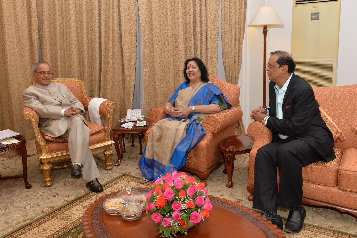 | Caption: | The President of India, Shri Pranab Mukherjee meeting with Dr. (Mrs.) J. Geeta Reddy, at Rashtrapati Nilayam, Bolarum, in Secunderabad on July 04, 2015. |