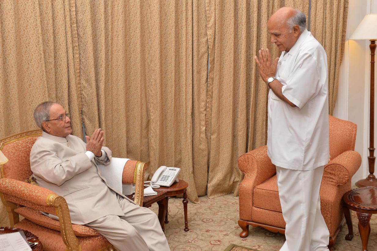 | Caption: | The President of India, Shri Pranab Mukherjee meeting with Shri K Rama Mohana Rao, former MP and others, at Rashtrapati Nilayam, Bolarum, in Secunderabad on July 05, 2015. |