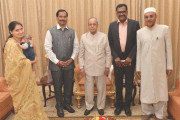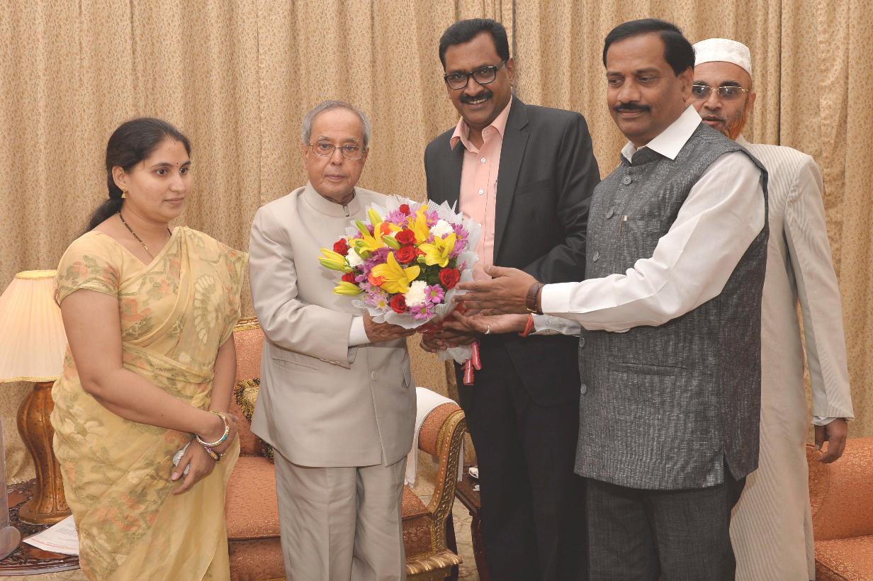 | Caption: | The President of India, Shri Pranab Mukherjee meeting with Prof.Ghanta Chakrapani and others, at Rashtrapati Nilayam, Bolarum, in Secunderabad on July 05, 2015. |