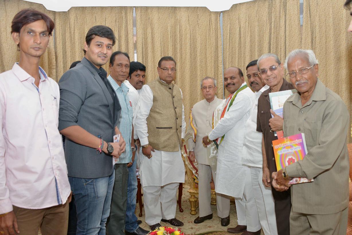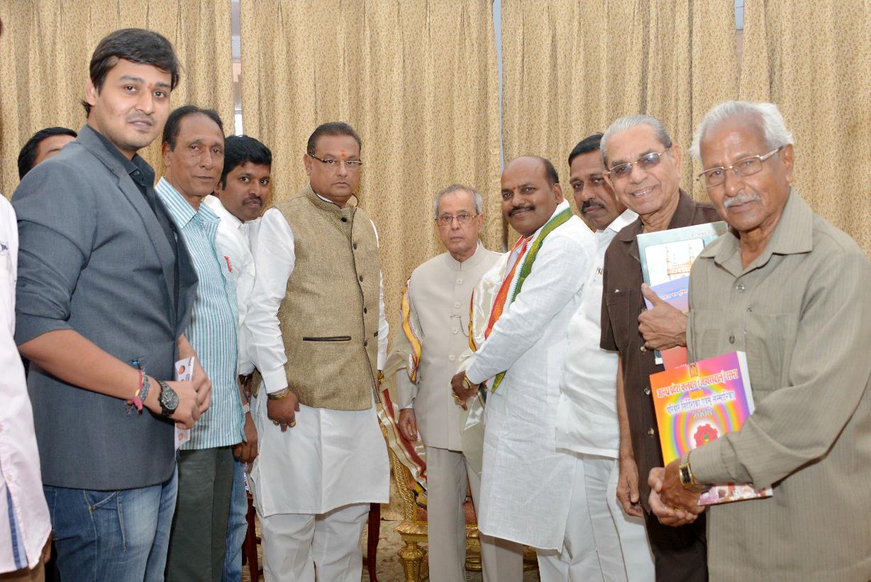 | Caption: | The President of India, Shri Pranab Mukherjee meeting with Shri Rakesh Jaiswal, Secretary, Telangana Pradesh Congress Committee and others, at Rashtrapati Nilayam, Bolarum, in Secunderabad on July 05, 2015. |