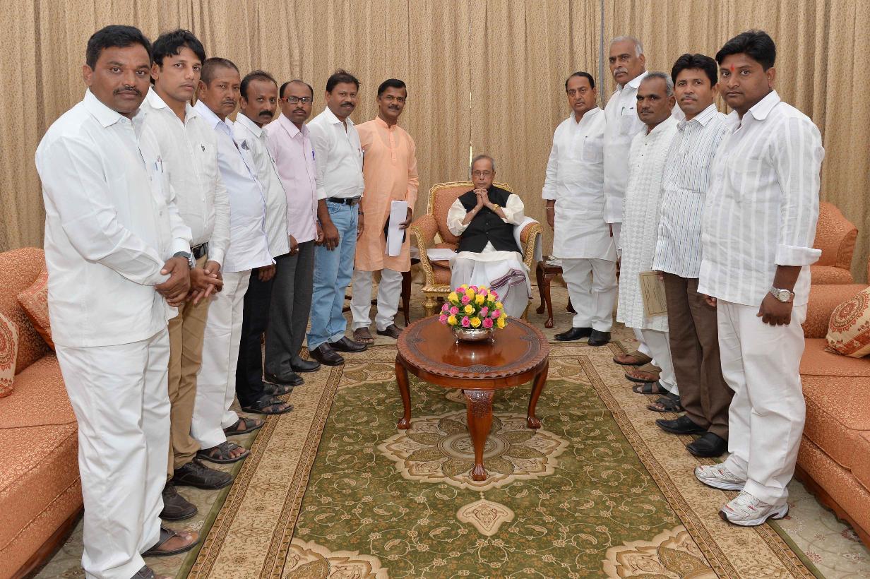 | Caption: | The President of India, Shri Pranab Mukherjee meeting with the Minister for Housing Law & Endowments, Govt.of Telangana, Shri A. Indrakaran Reddy and others, at Rashtrapati Nilayam, Bolarum, in Secunderabad on July 06, 2015. |