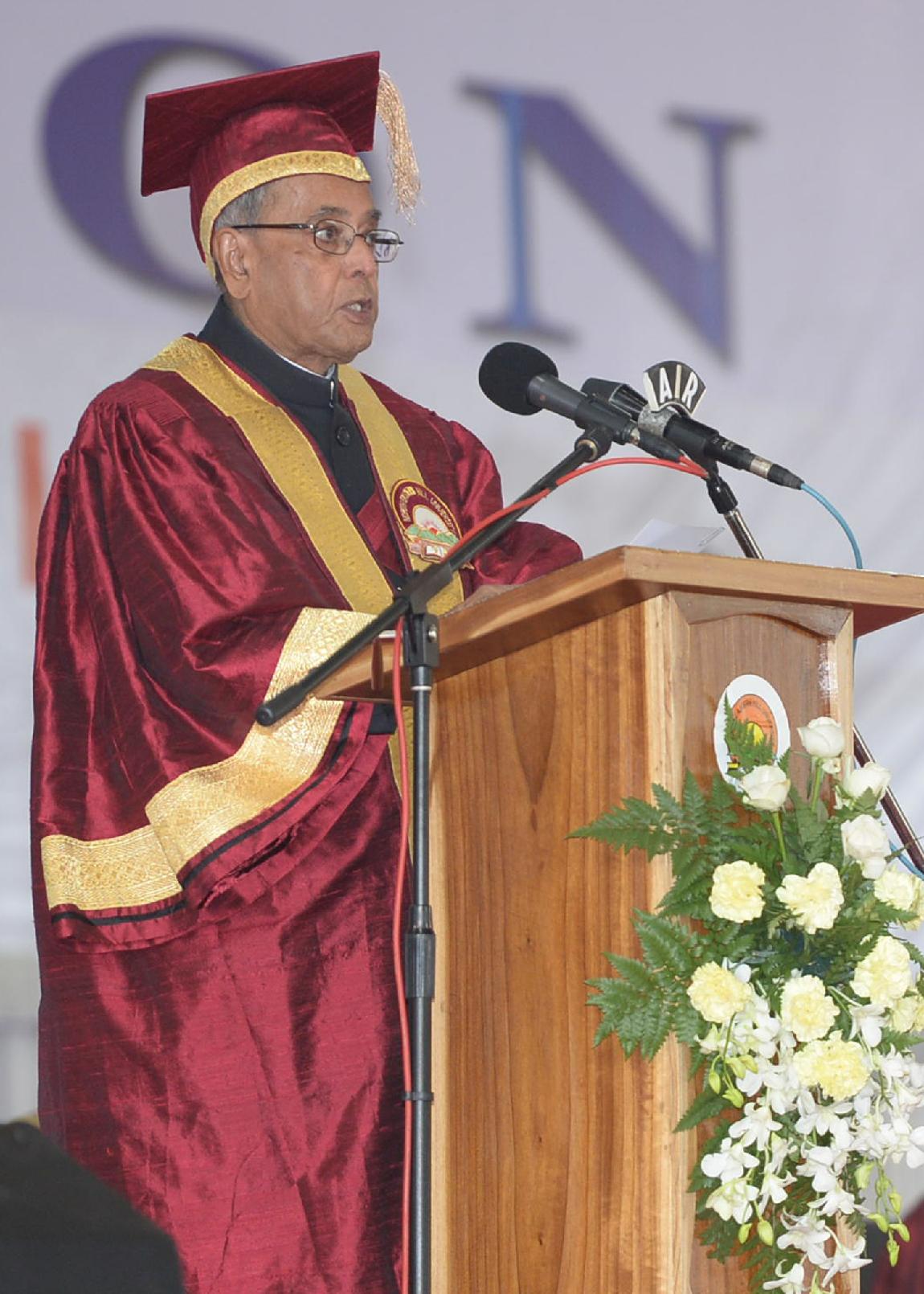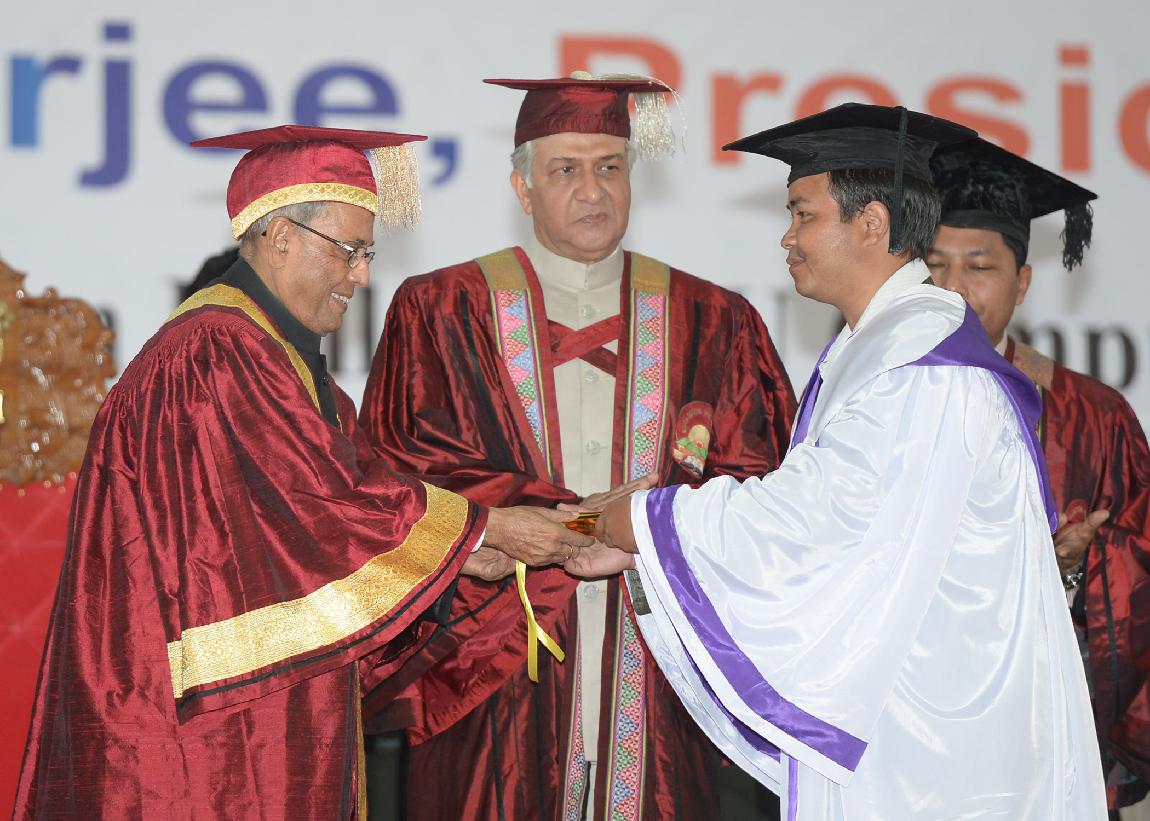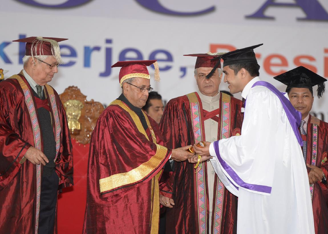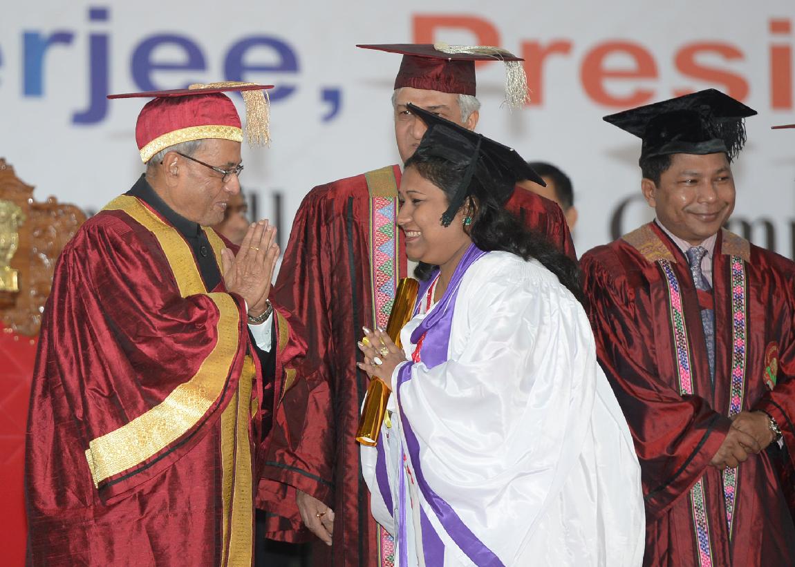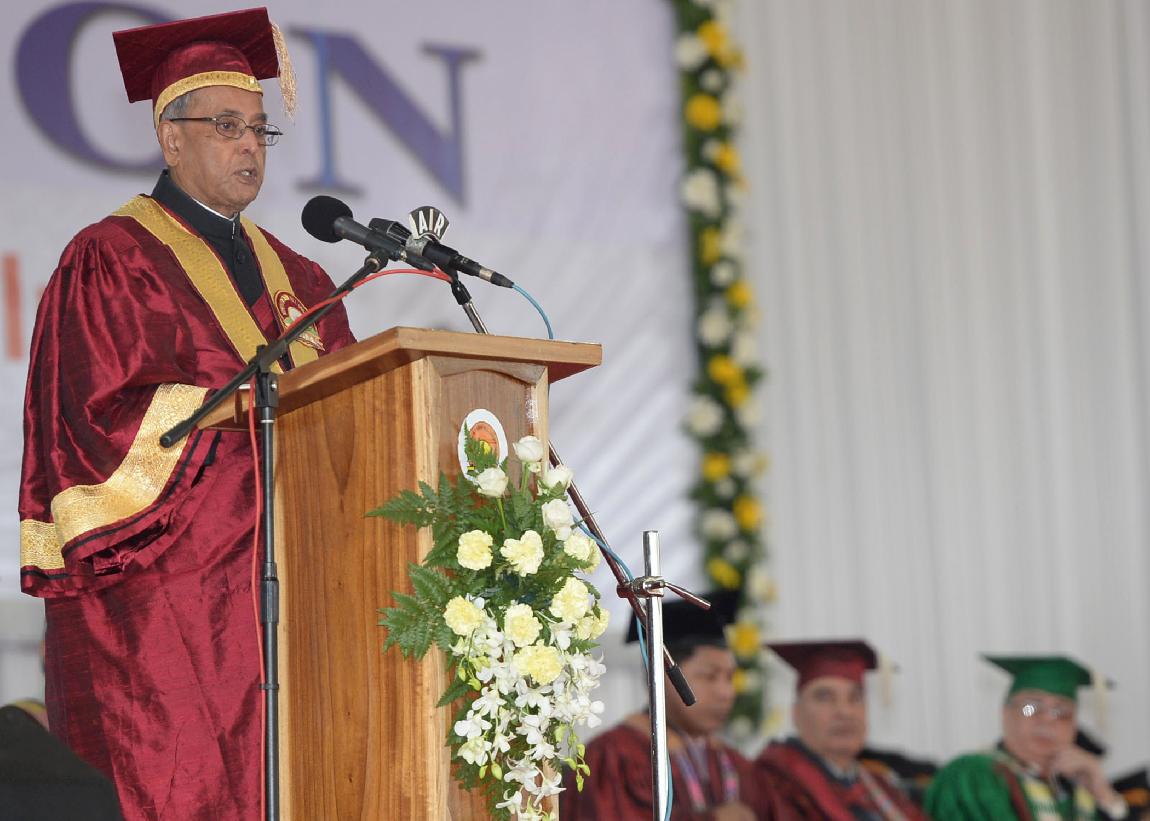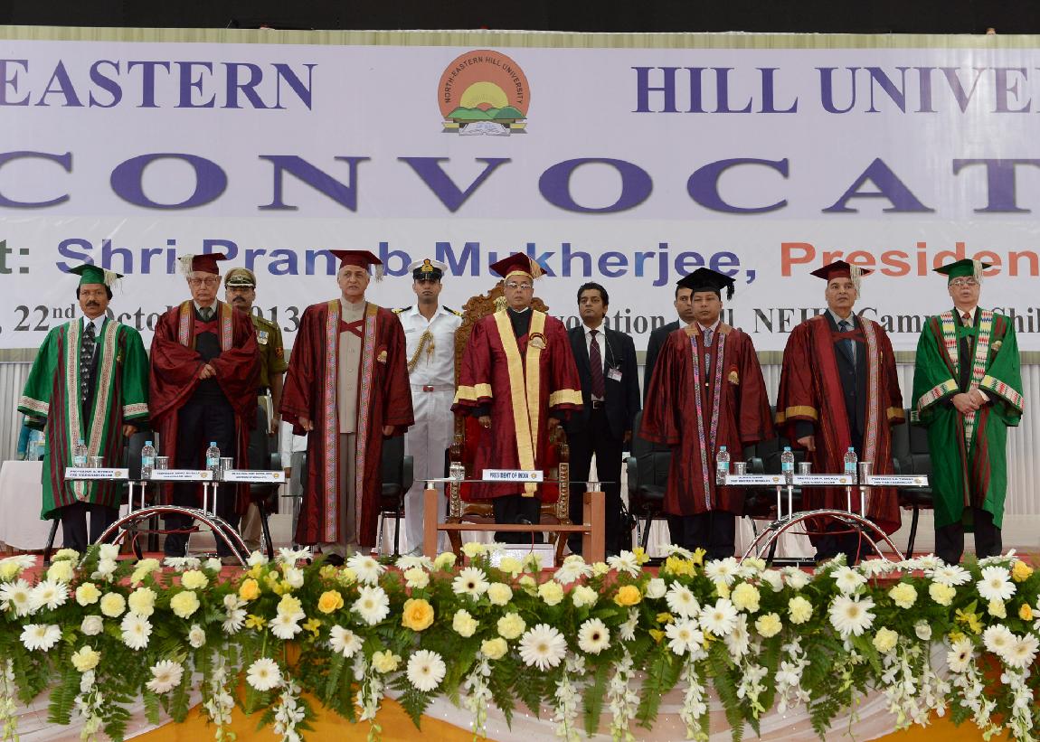 | Caption: | The President of India, Shri Pranab Mukherjee during the annual convocation of North-Eastern Hill University (NEHU) at Shillong in Meghalaya on Oct 22, 2013 |