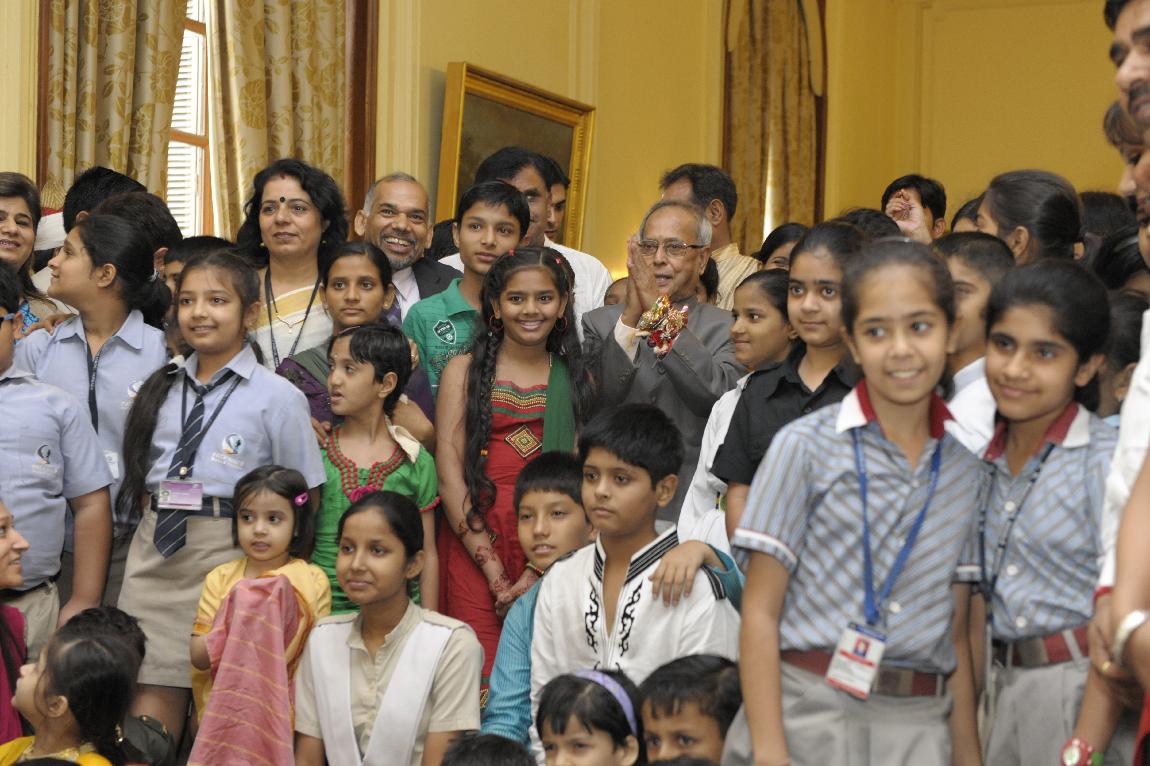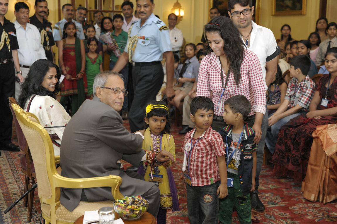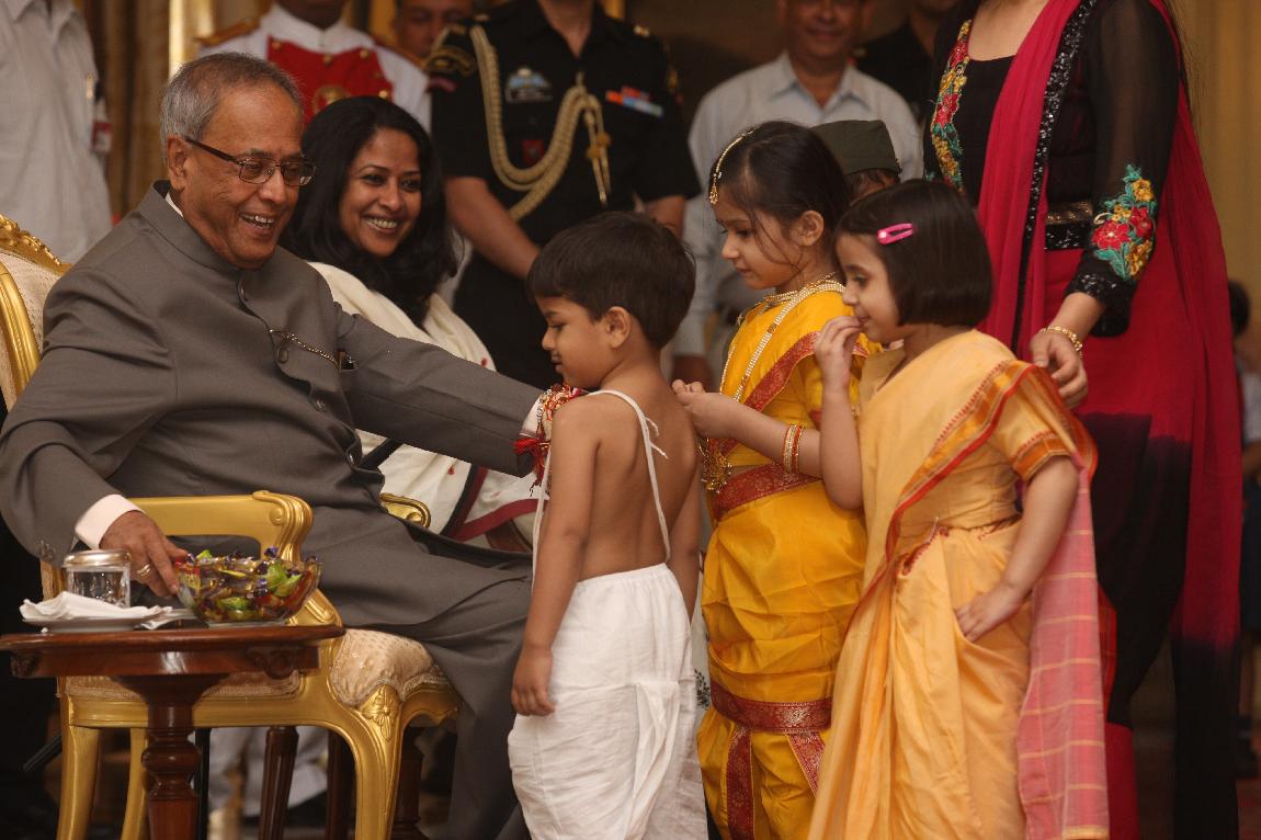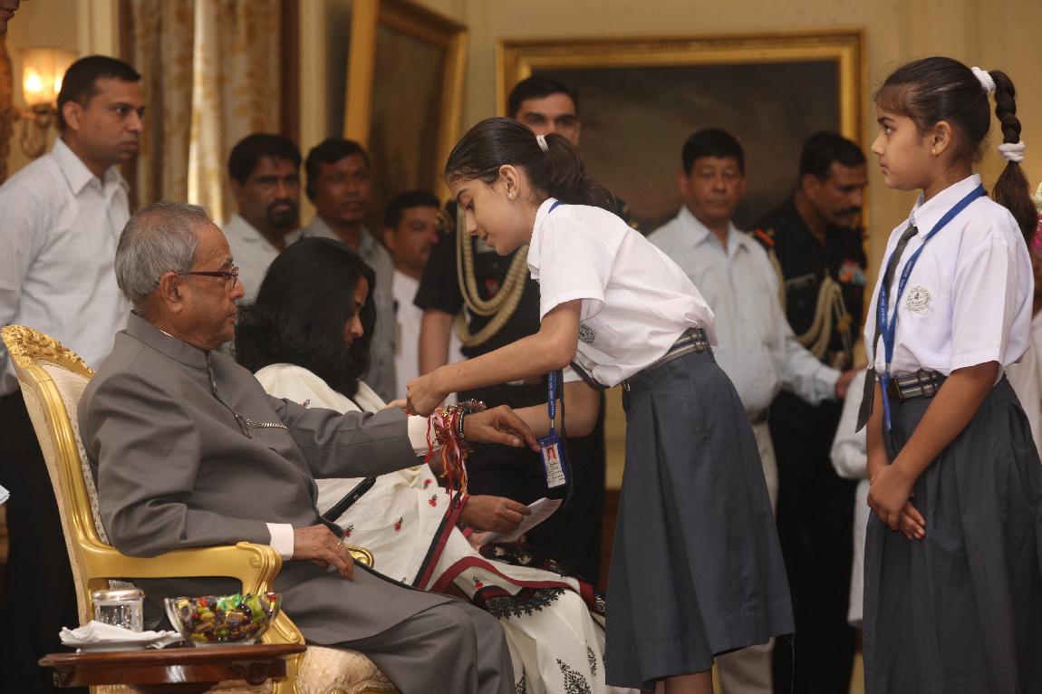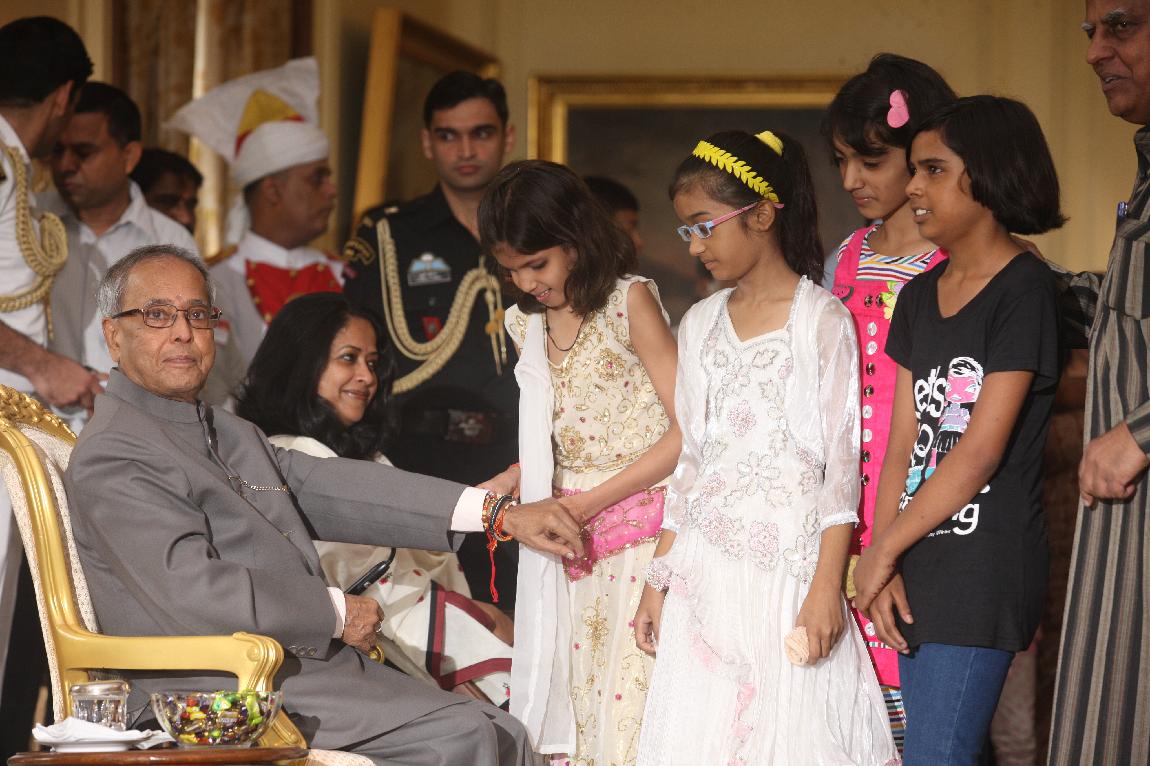 | Caption: | The President of India, Shri Pranab Mukherjee received Raksha Bandhan Greetings at Yellow Drawing Room on August 02, 2012 |