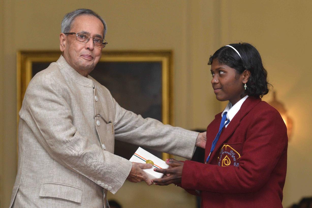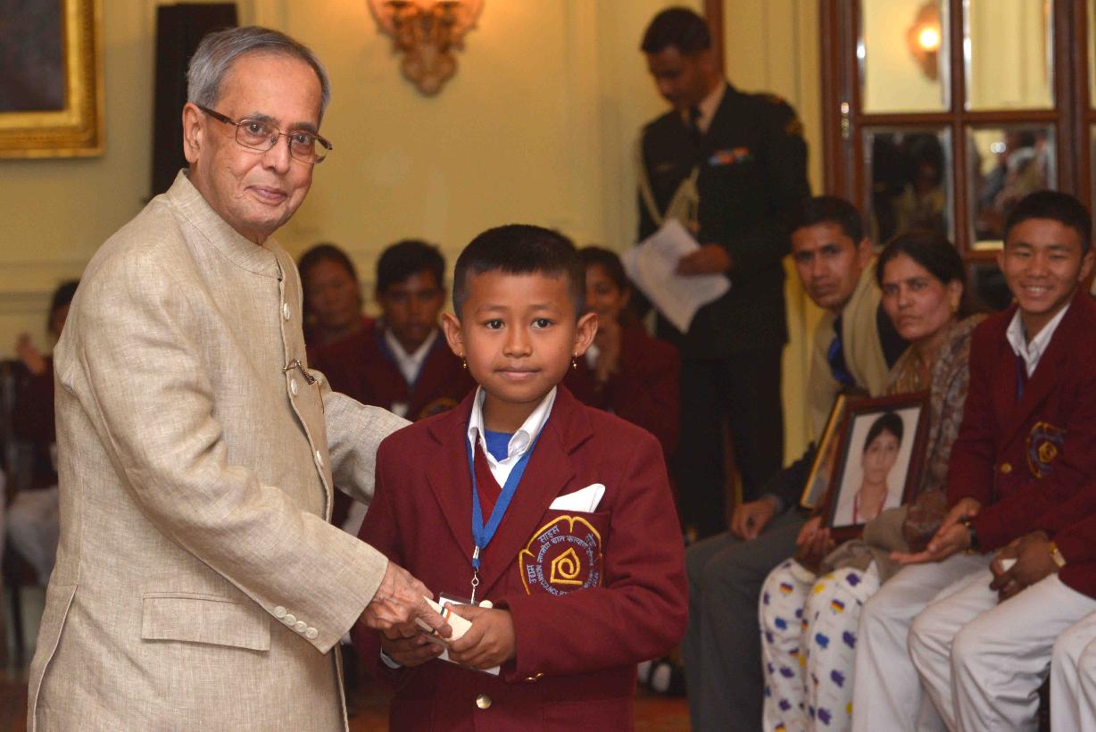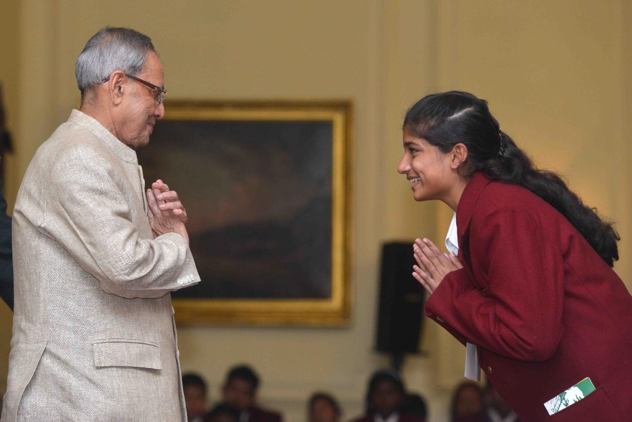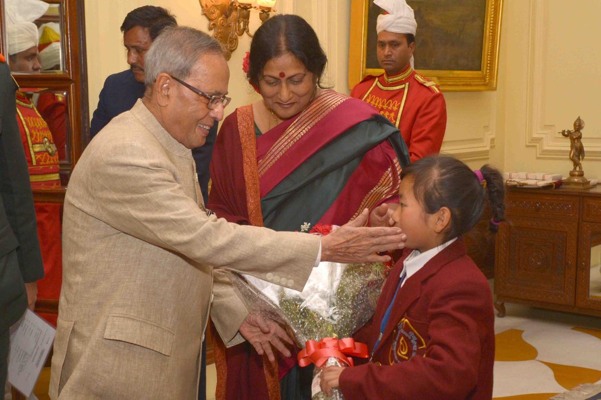 | Caption: | The President of India, Shri Pranab Mukherjee, meeting with the National Bravery Award winner children, at a function, at Rashtrapati Bhavan, in New Delhi on January 22, 2015 |