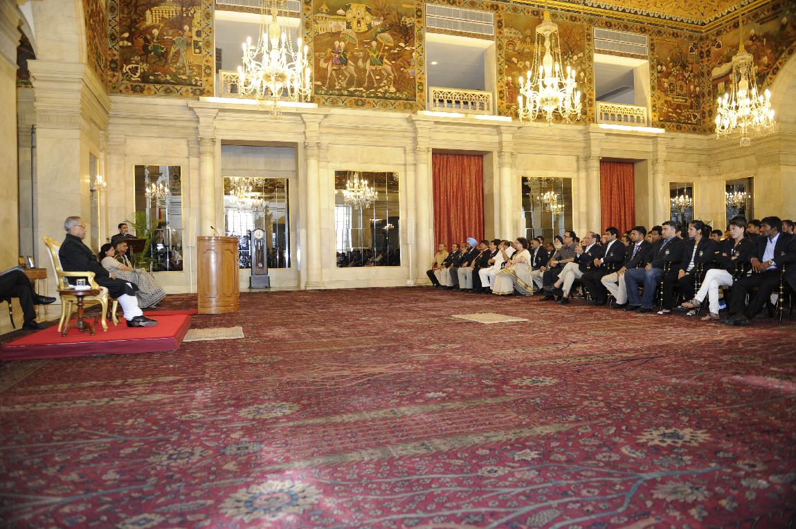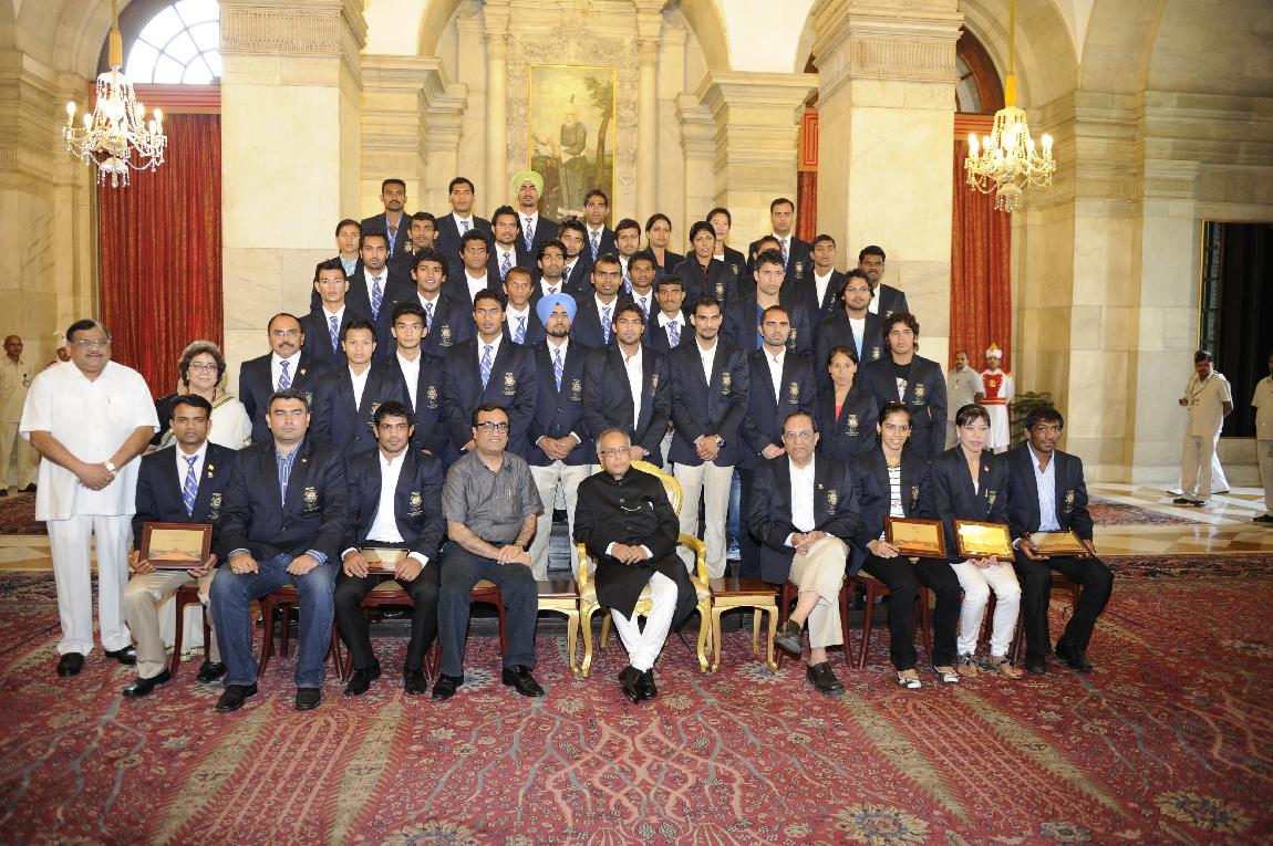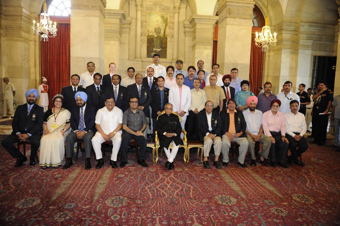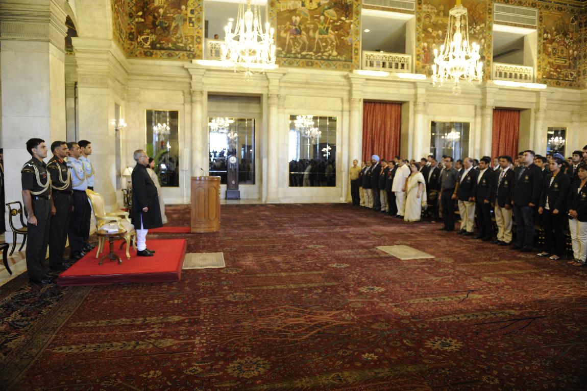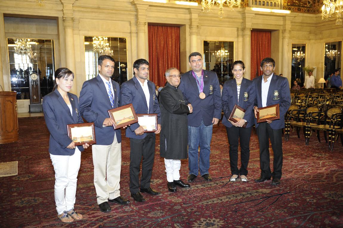 The President of India, Shri Pranab Mukherjee with Indian Olympic Team on August 18, 2012