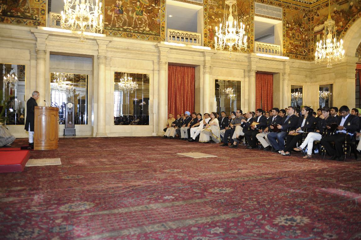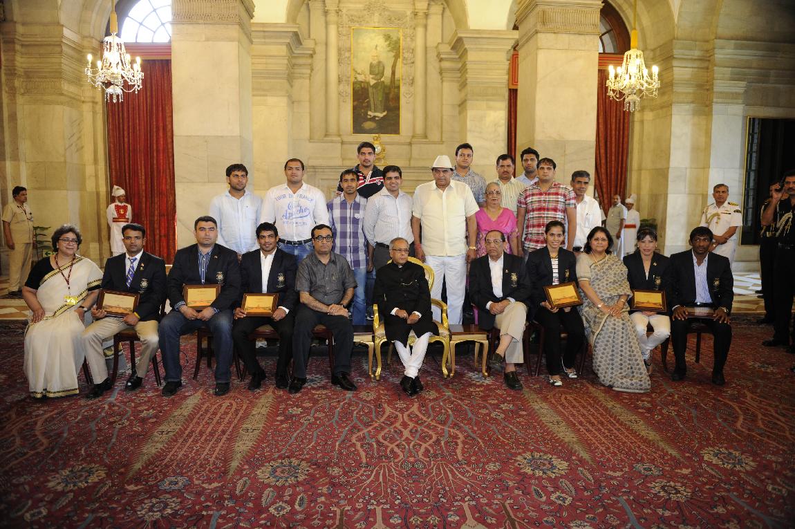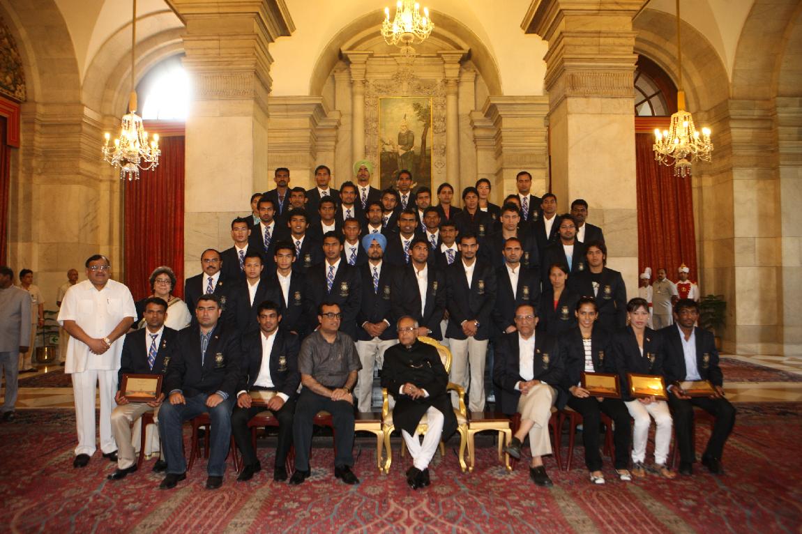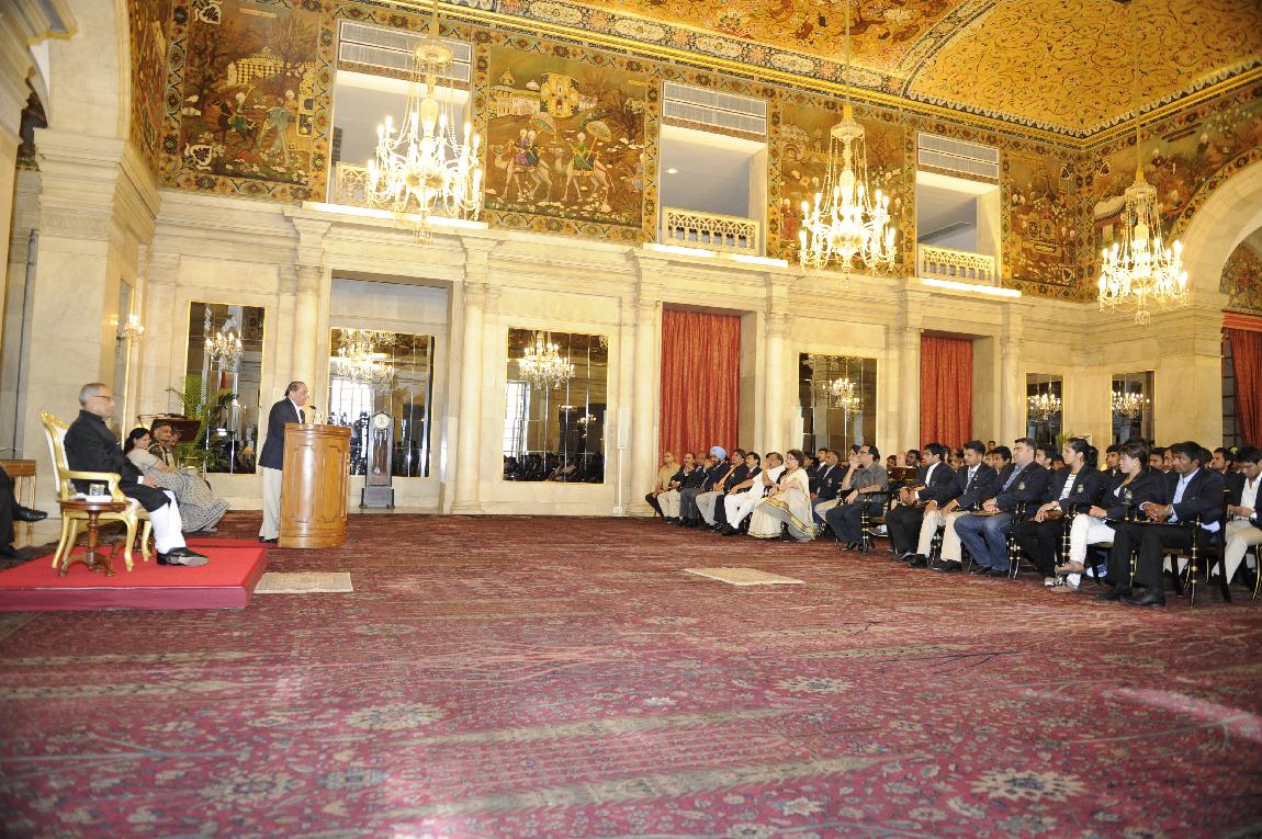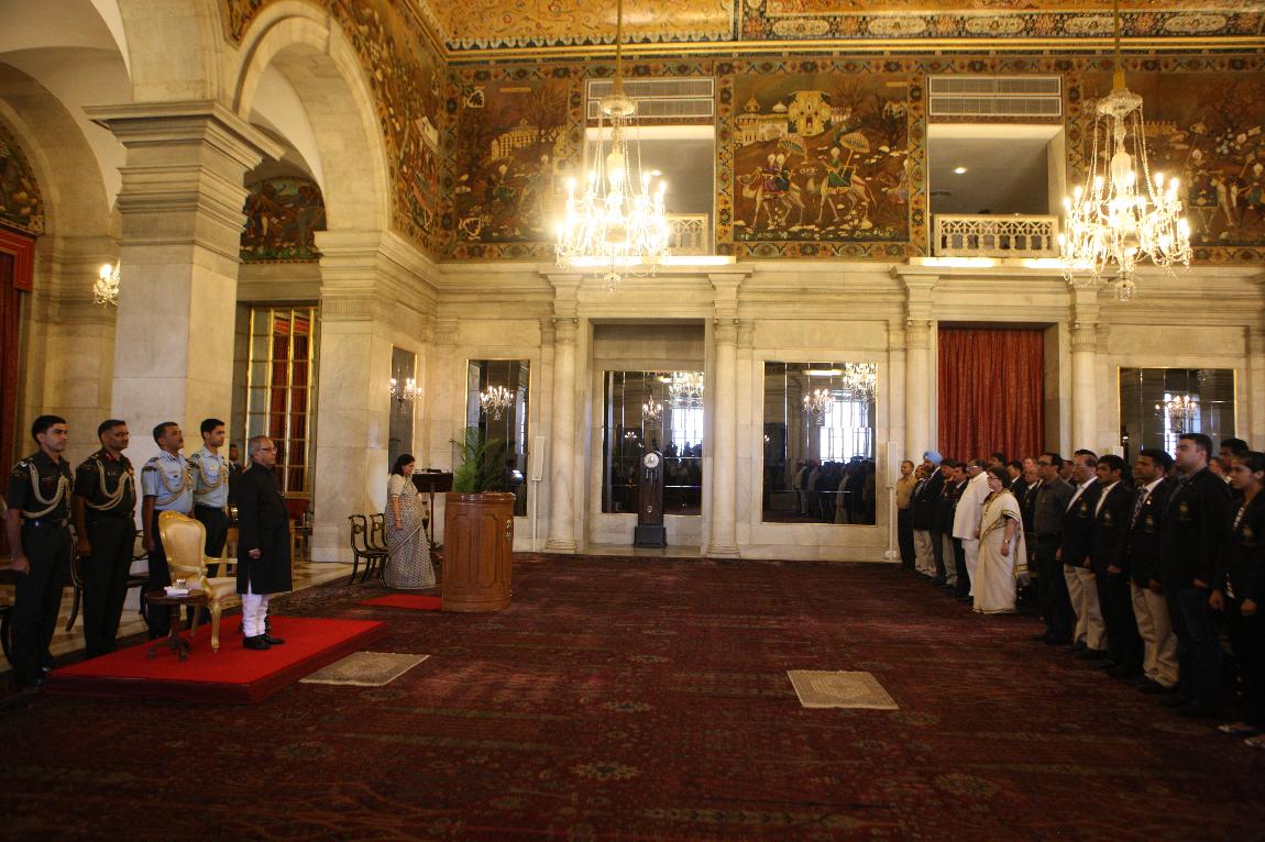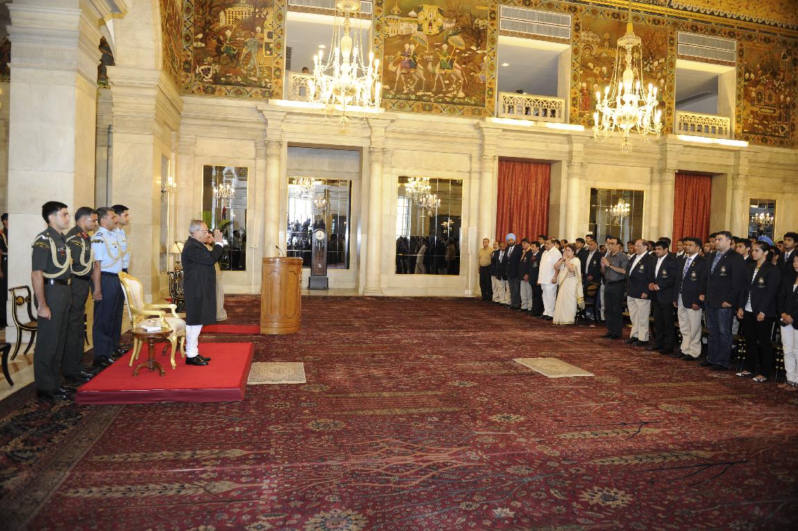 The President of India, Shri Pranab Mukherjee with Indian Olympic Team on August 18, 2012