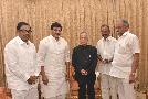 | Caption: | The President of India, Shri Pranab Mukherjee meeting with Dr. Raghuveera Reddy and others, at Rashtrapati Nilayam, Bolarum, in Secunderabad on July 07, 2015. |