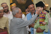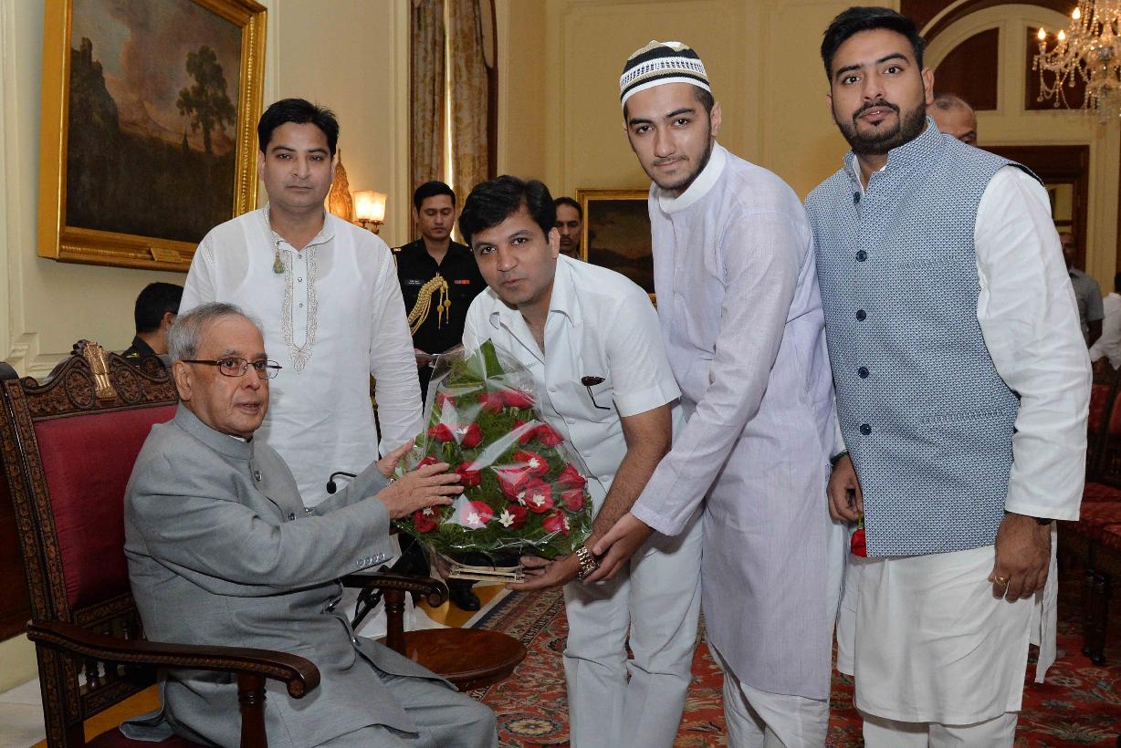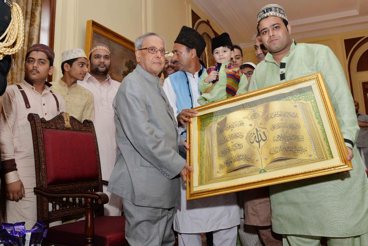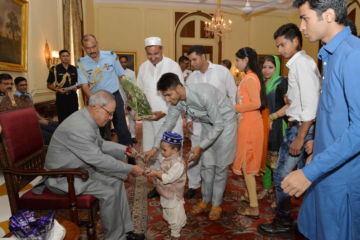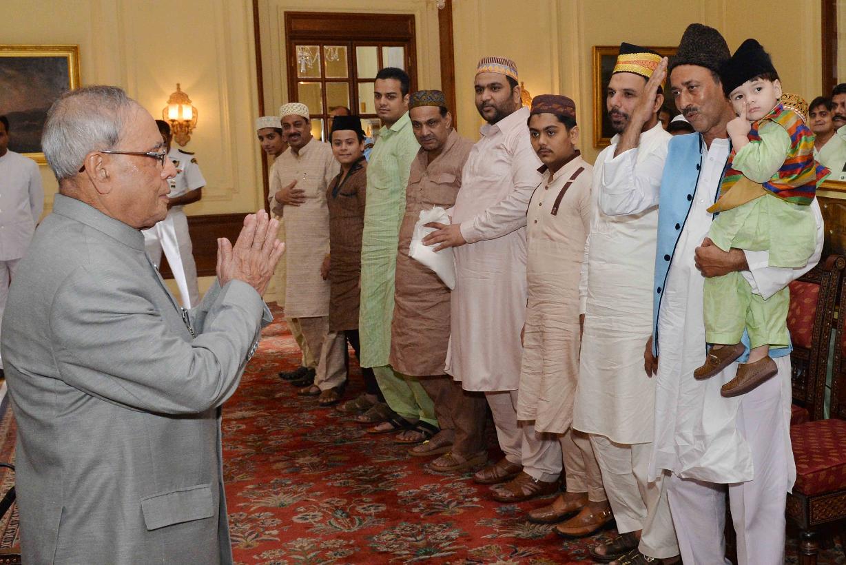 | Caption: | The President of India, Shri Pranab Mukherjee receiving Id-ul-Fitr's greetings, at Rashtrapati Bhavan, in New Delhi on July 18, 2015. |