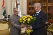 | Caption: | The Governor of Uttarakhand, Dr. K.K. Paul calling on the President of India, Shri Pranab Mukherjee, at Rashtrapati Bhavan, in New Delhi on August 01, 2015. |