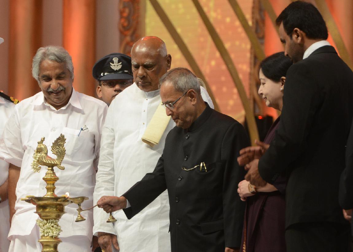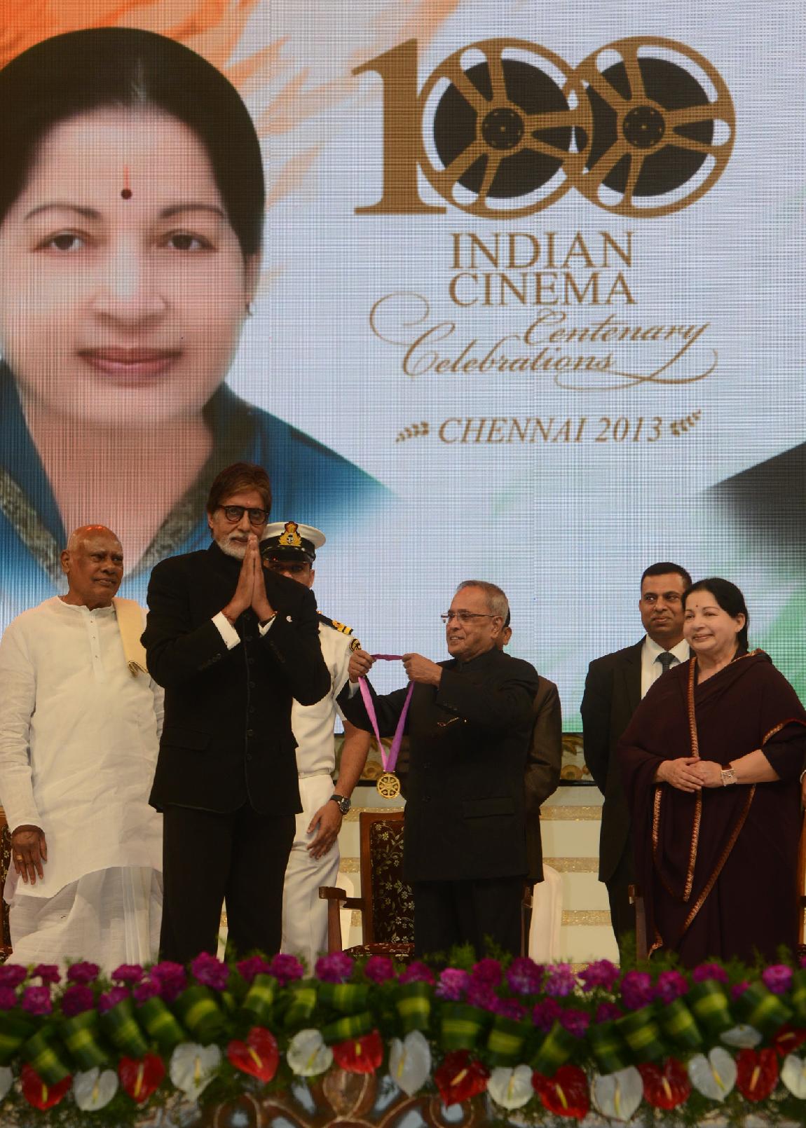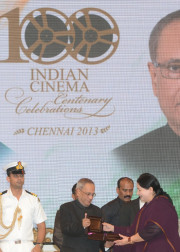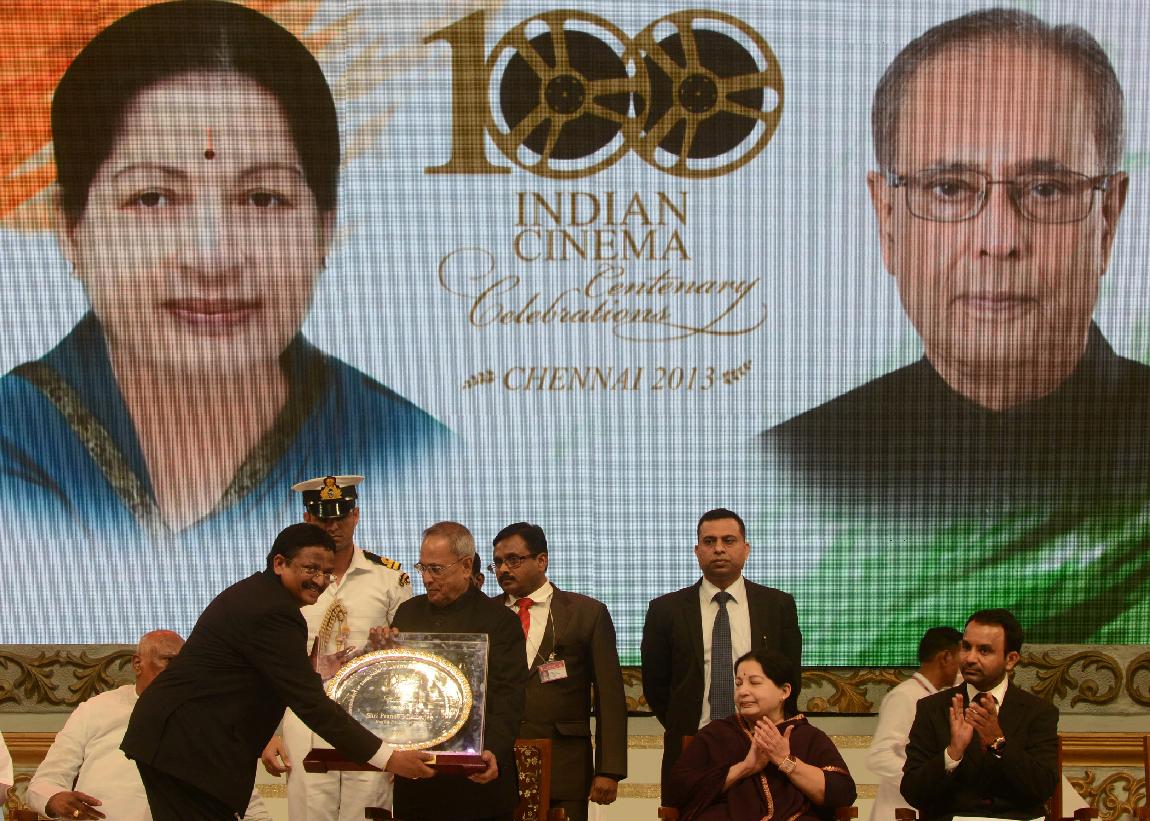 | Caption: | The President of India, Shri Pranab Mukherjee during the Centenary Celebrations of Indian Cinema Organized by the South Indian Film Chamber of Commerce at Chennai in Tamil Nadu on Sep 24, 2013 |