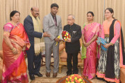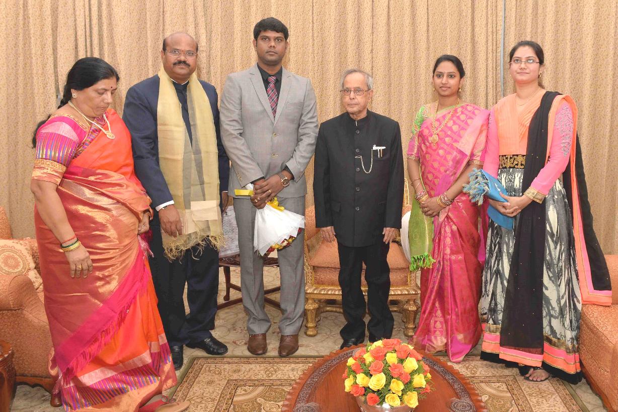 | Caption: | The President of India, Shri Pranab Mukherjee meeting with Dr. P.C. Rayulu and others, at Rashtrapati Nilayam, Bolarum, in Secunderabad on July 07, 2015. |