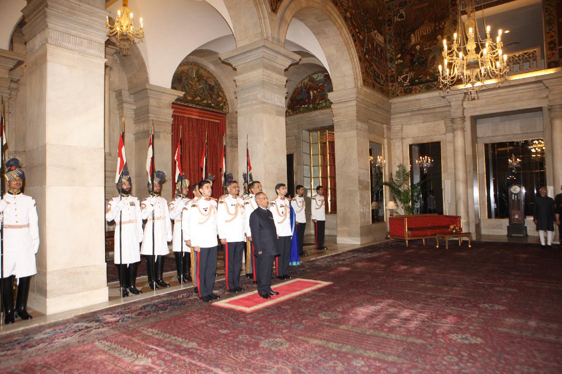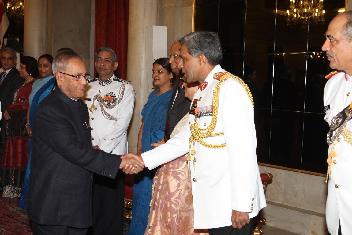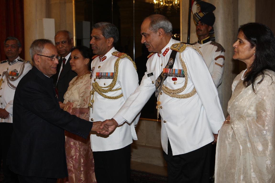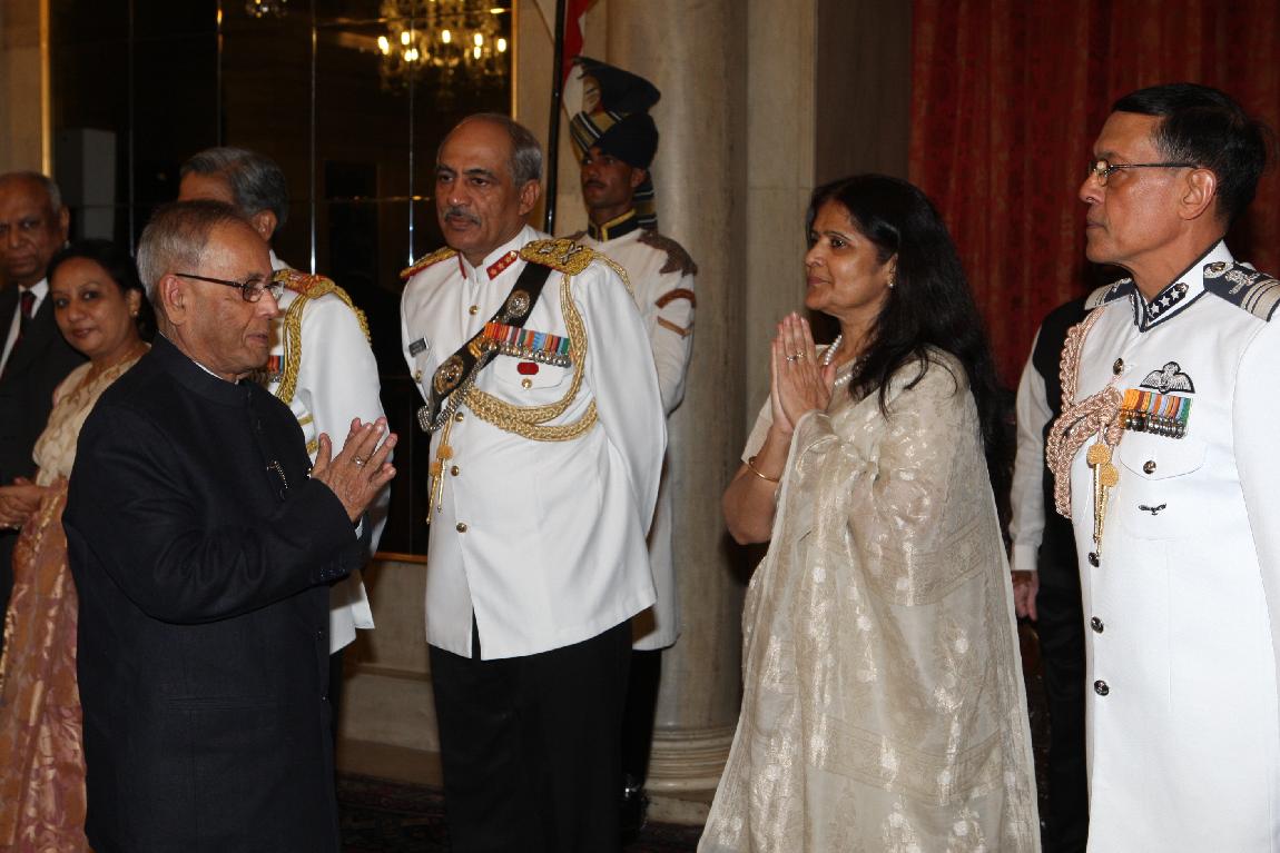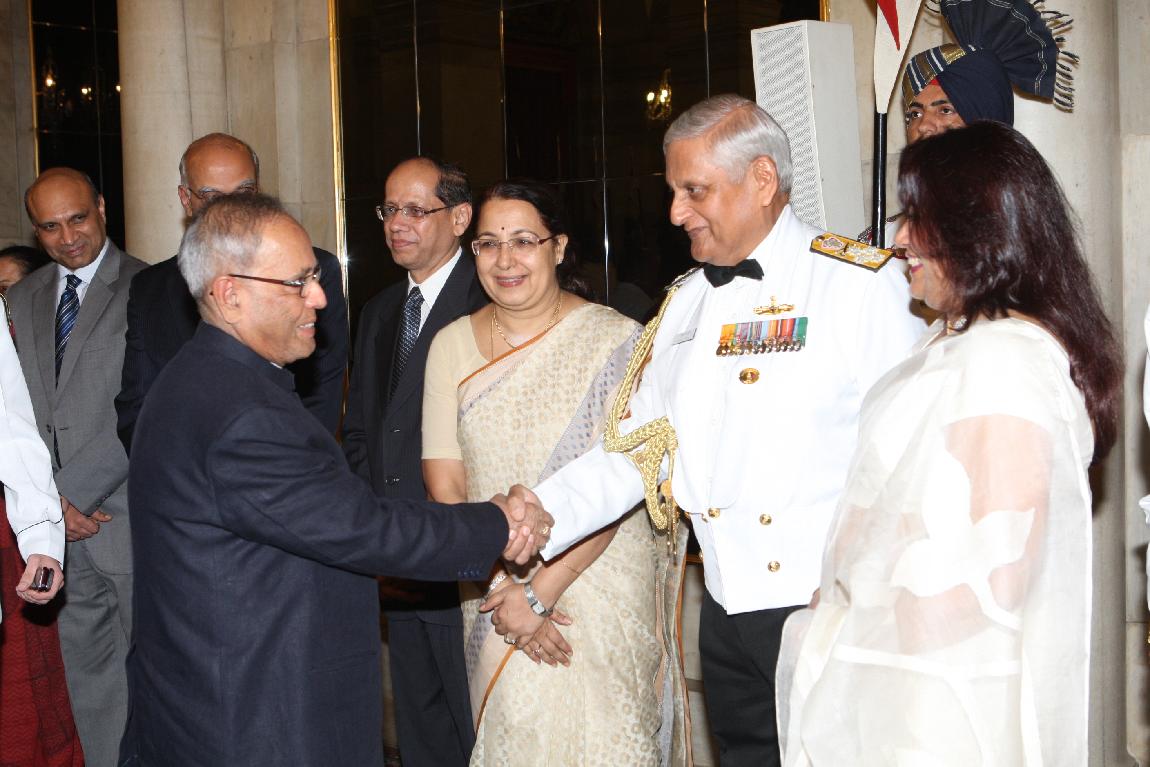 | Caption: | The President of India, Shri Pranab Mukherjee at Farewell Dinner to Admiral Nirmal Verma, Chief Naval Staff on August 25, 2012 |