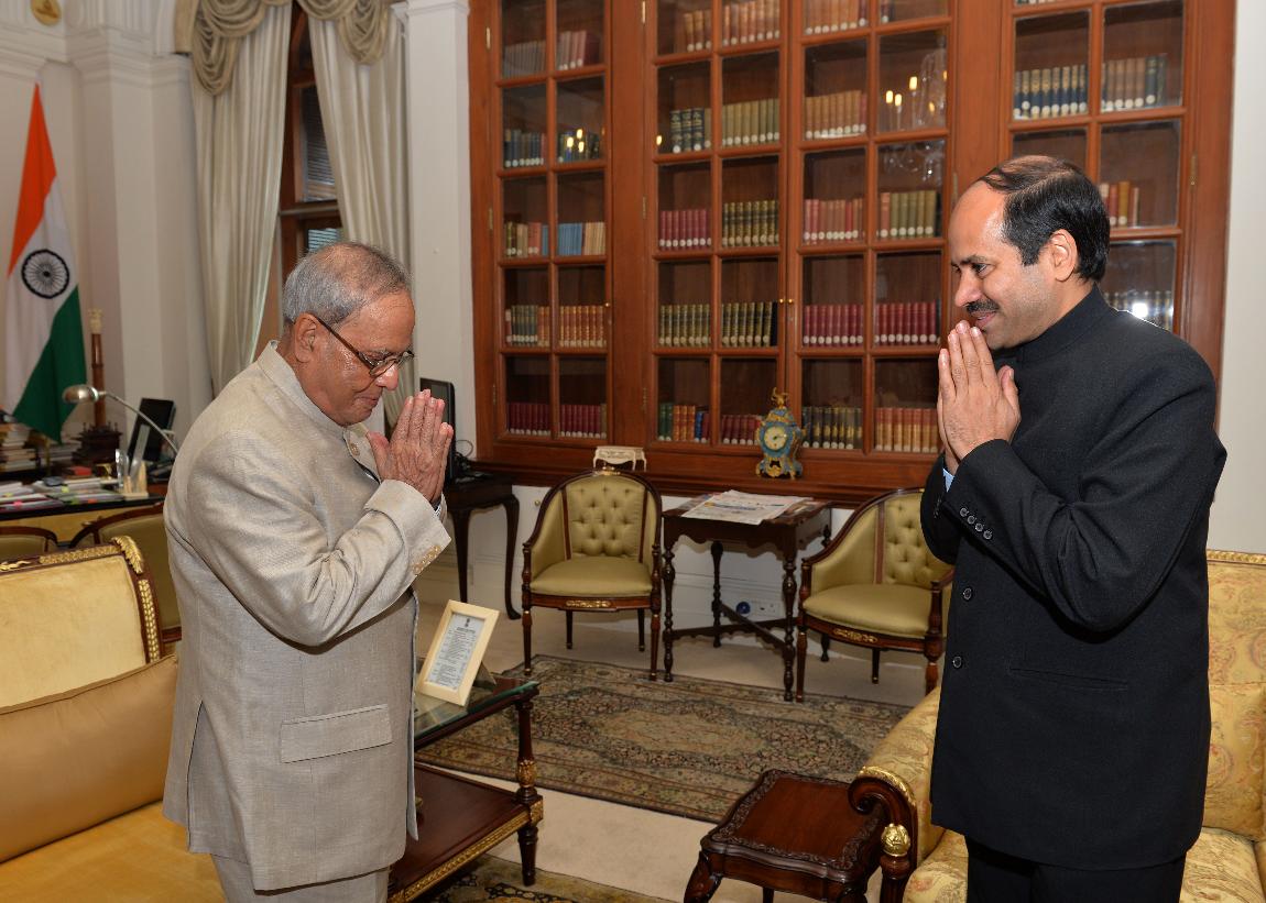 | Caption: | The President of India, Shri Pranab Mukherjee meeting with the High Commissioner-designate of India to Tanzania, Shri Sandeep Arya, at Rashtrapati Bhavan, in New Delhi on July 22, 2015. |