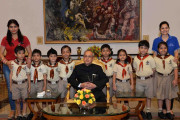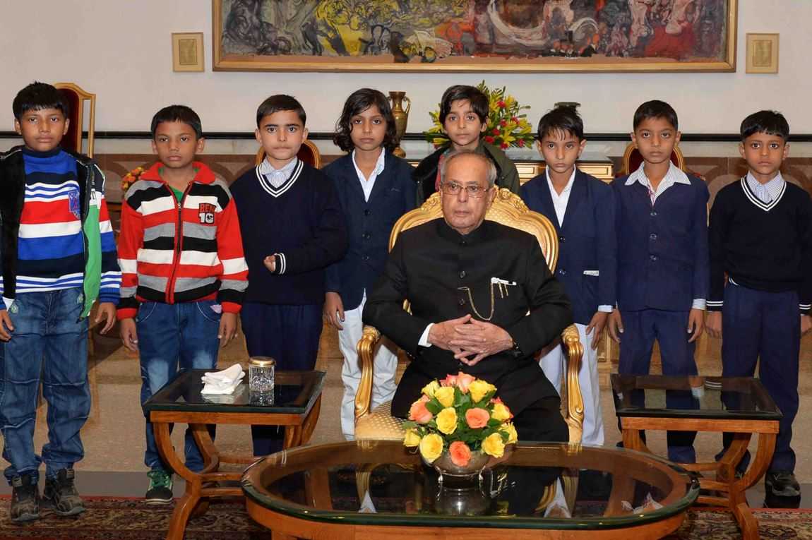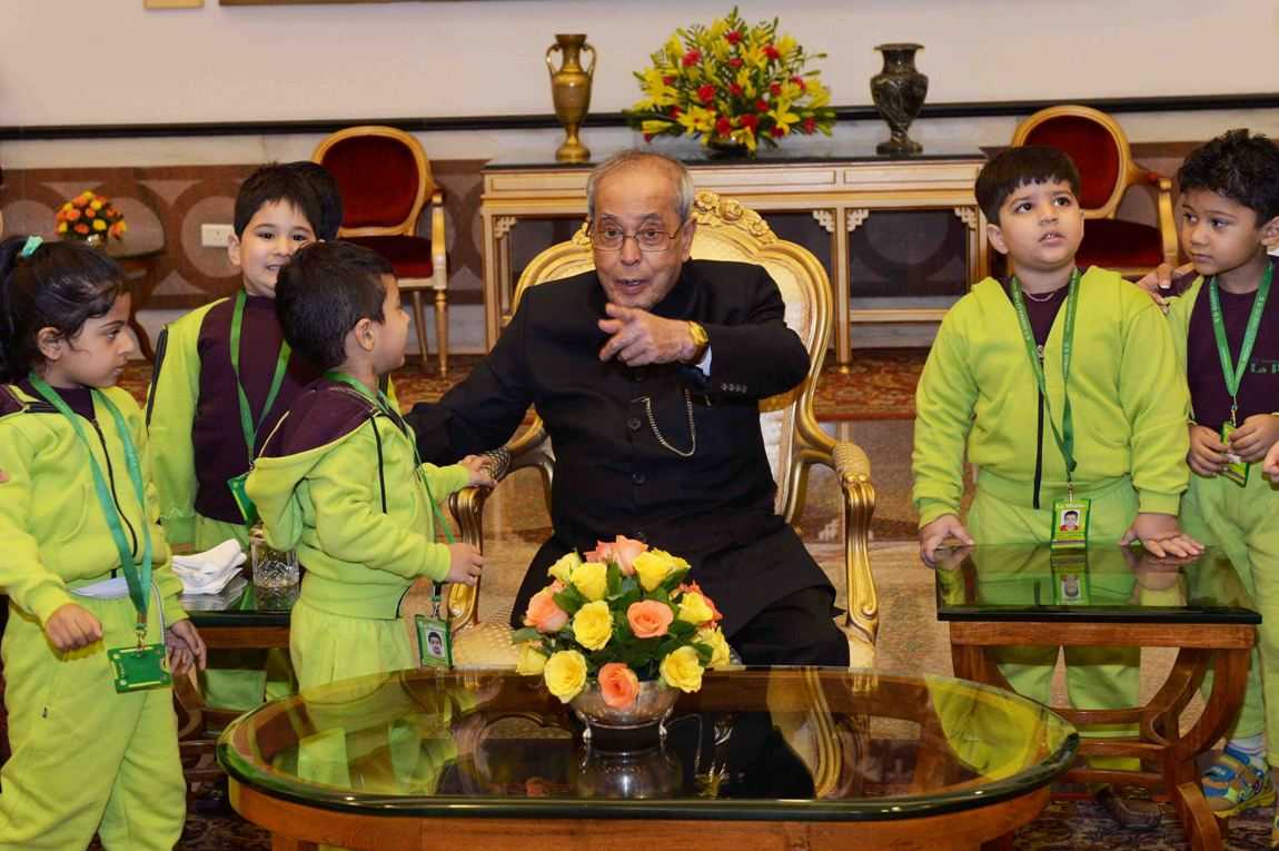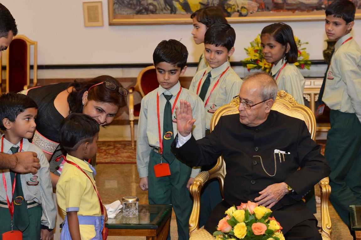 | Caption: | The President of India, Shri Pranab Mukherjee meeting with the students and staff from various school/institutions on the occasion of Children s Day, at Rashtrapati Bhavan on November 14, 2015. |