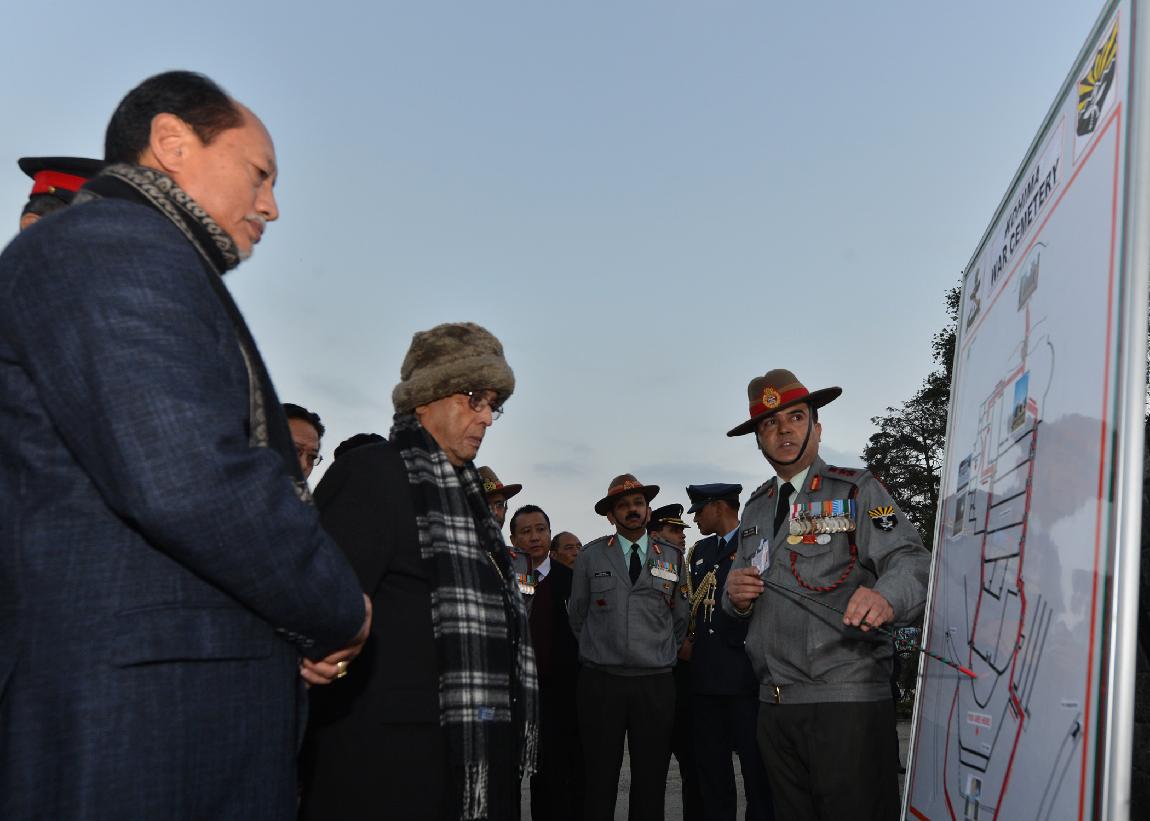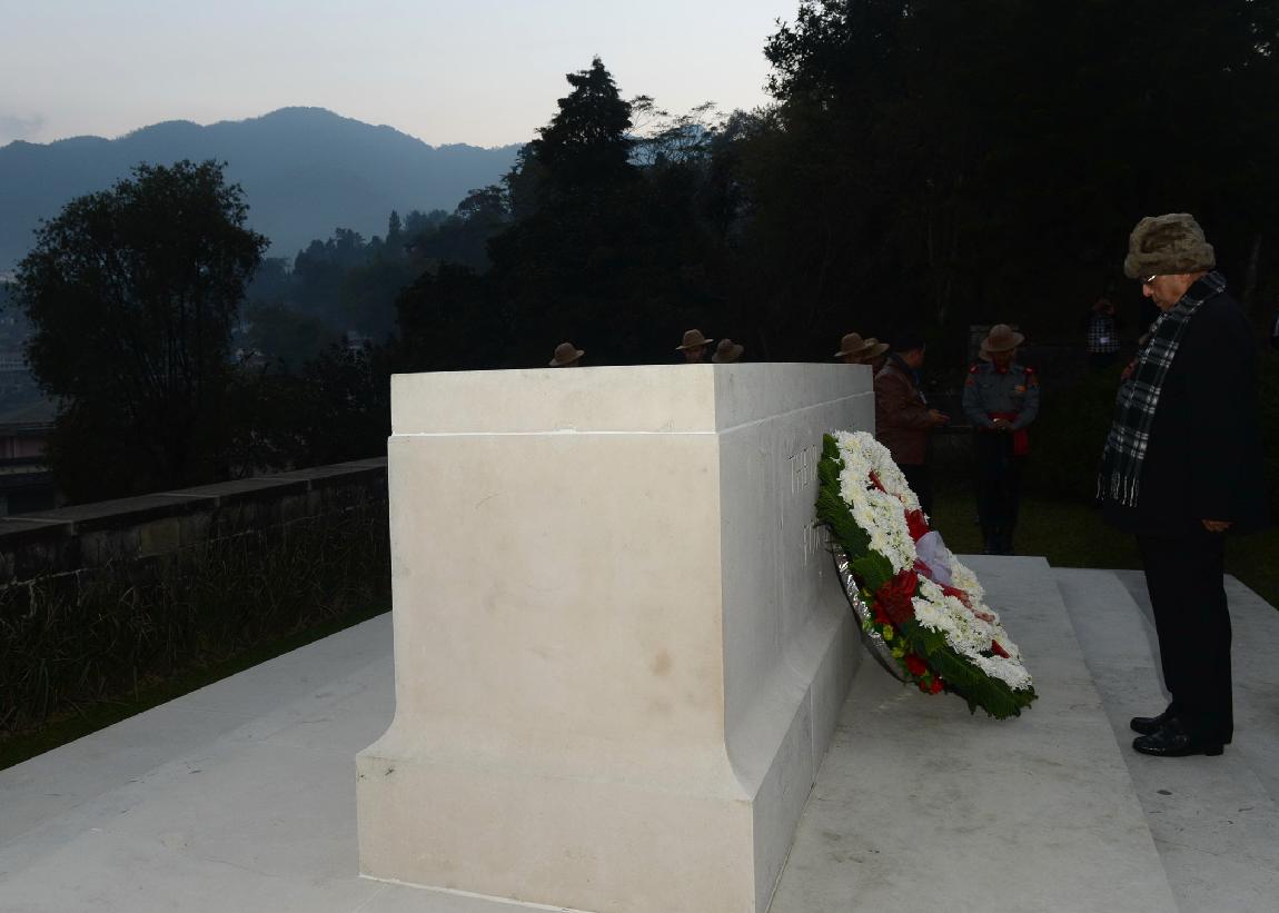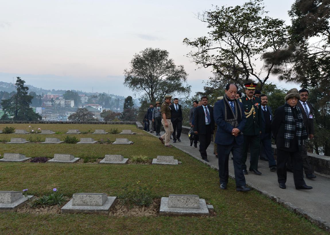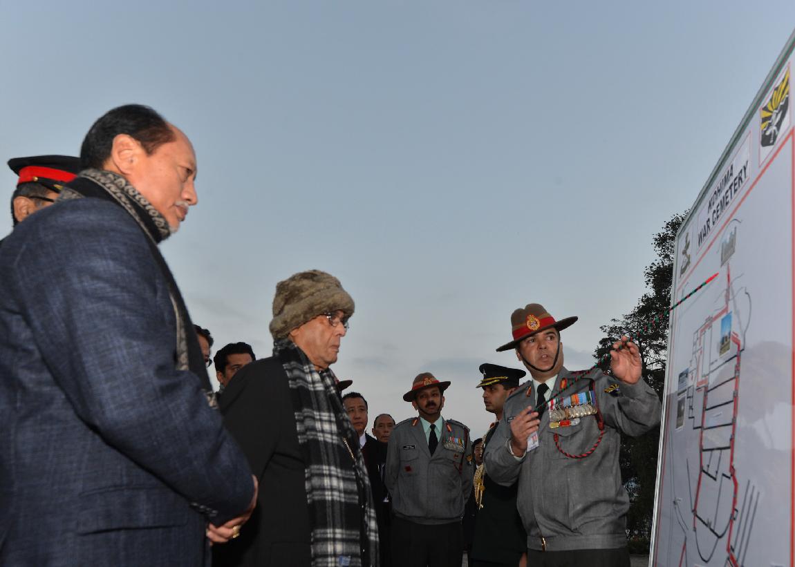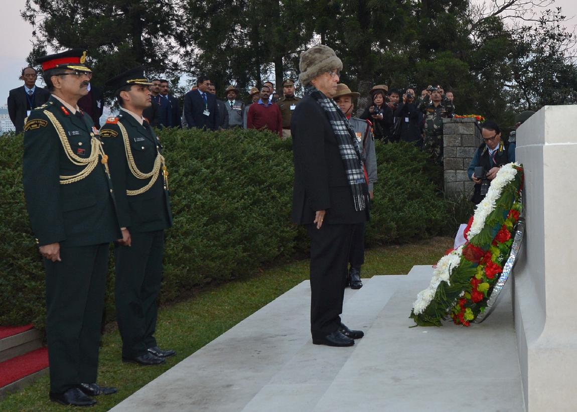 | Caption: | The President of India, Shri Pranab Mukherjee laying wreath at the War Memorial at Kohima in Nagaland on Nov 30, 2013 |