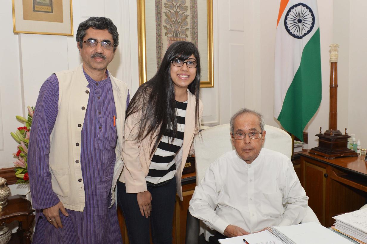 | Caption: | The President of India, Shri Pranab Mukherjee meeting with Shri Tamal Kanti Ghosh, Editor, Amrita Prabhat, Kolkata alongwith his daughter Ms. Tanya Ghosh, at Rashtrapati Bhavan on November 23, 2015. |