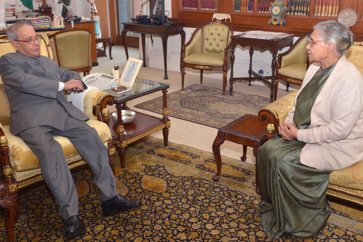 | Caption: | The President of India, Shri Pranab Mukherjee meeting with Smt. Sheila Dikshit, former Chief Minister of Delhi, at Rashtrapati Bhavan on December 04, 2015. |
