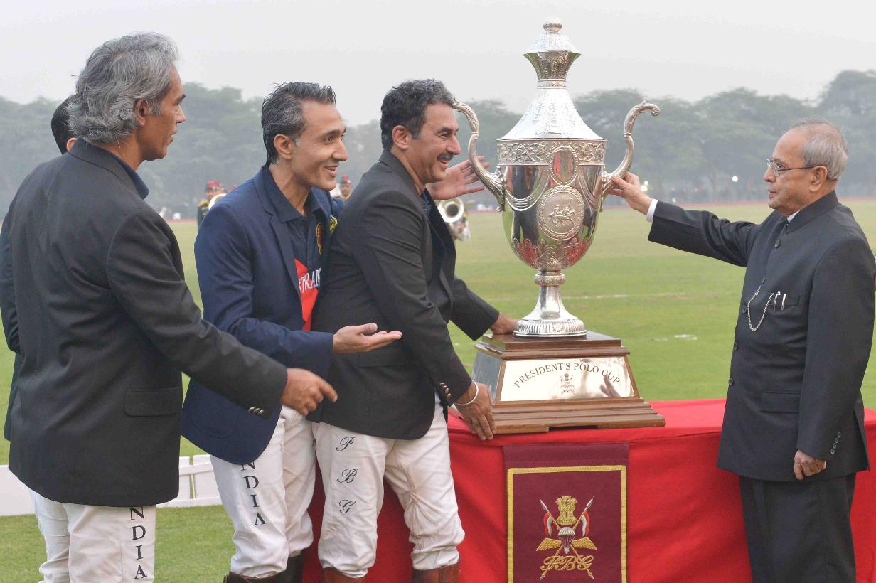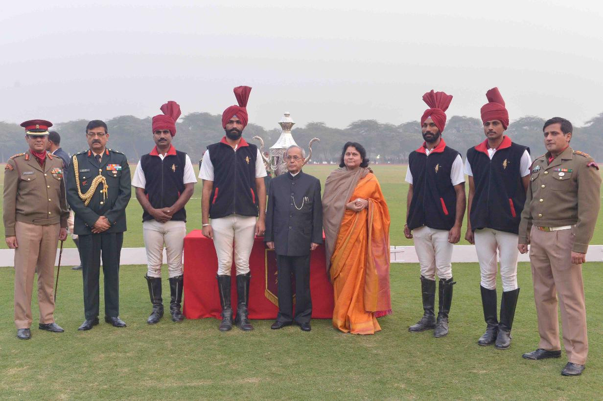 | Caption: | The President of India, Shri Pranab Mukherjee witnessing the President's Polo Cup Exhibition Match, at PBG Parade Ground (Polo Field) on December 06, 2015. |