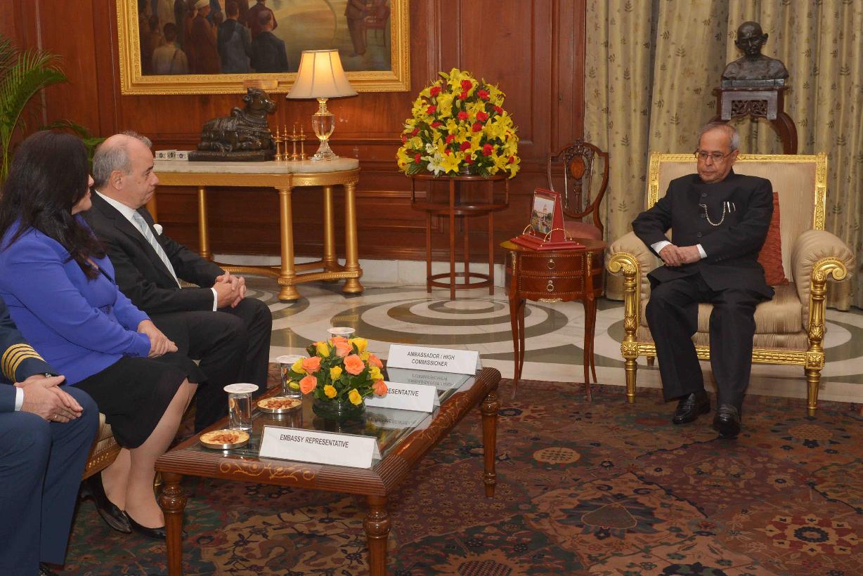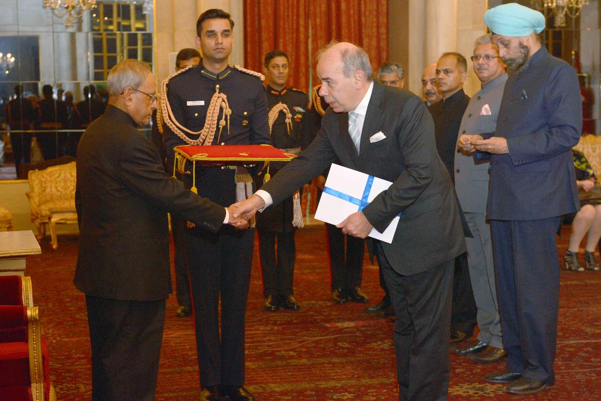 | Caption: | The Ambassador-designate of Greece, H.E. Mr. Pano Kalogeropoulos presenting his Credentials to the President of India, Shri Pranab Mukherjee, at Rashtrapati Bhavan on December 09, 2015. |