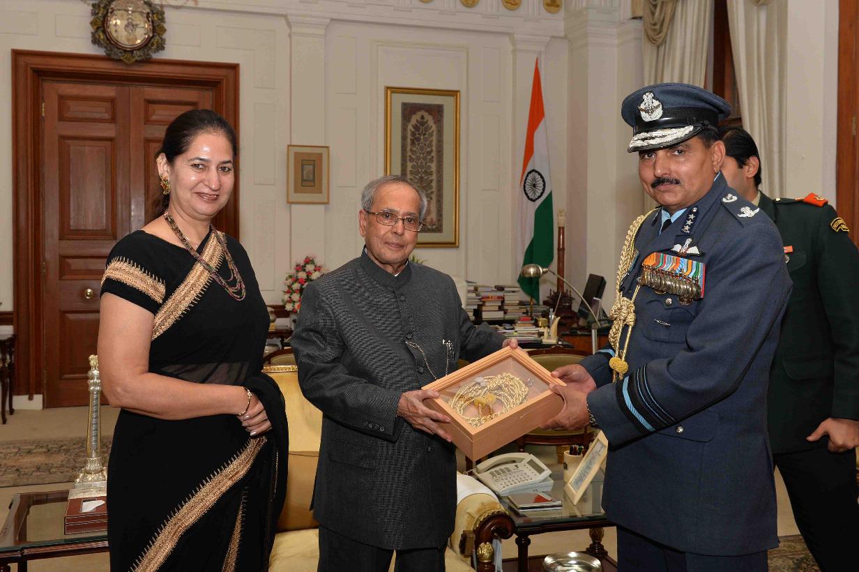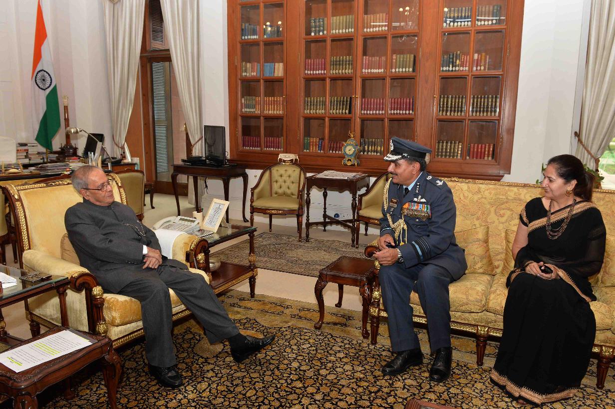 | Caption: | The President of India, Shri Pranab Mukherjee meeting with Air Marshal KS Gill, AOC-in-C, HQ CAC, Allahabad & Hony ADC to the President and Smt. Ranjeet Gill, at Rashtrapati Bhavan on December 10, 2015. |