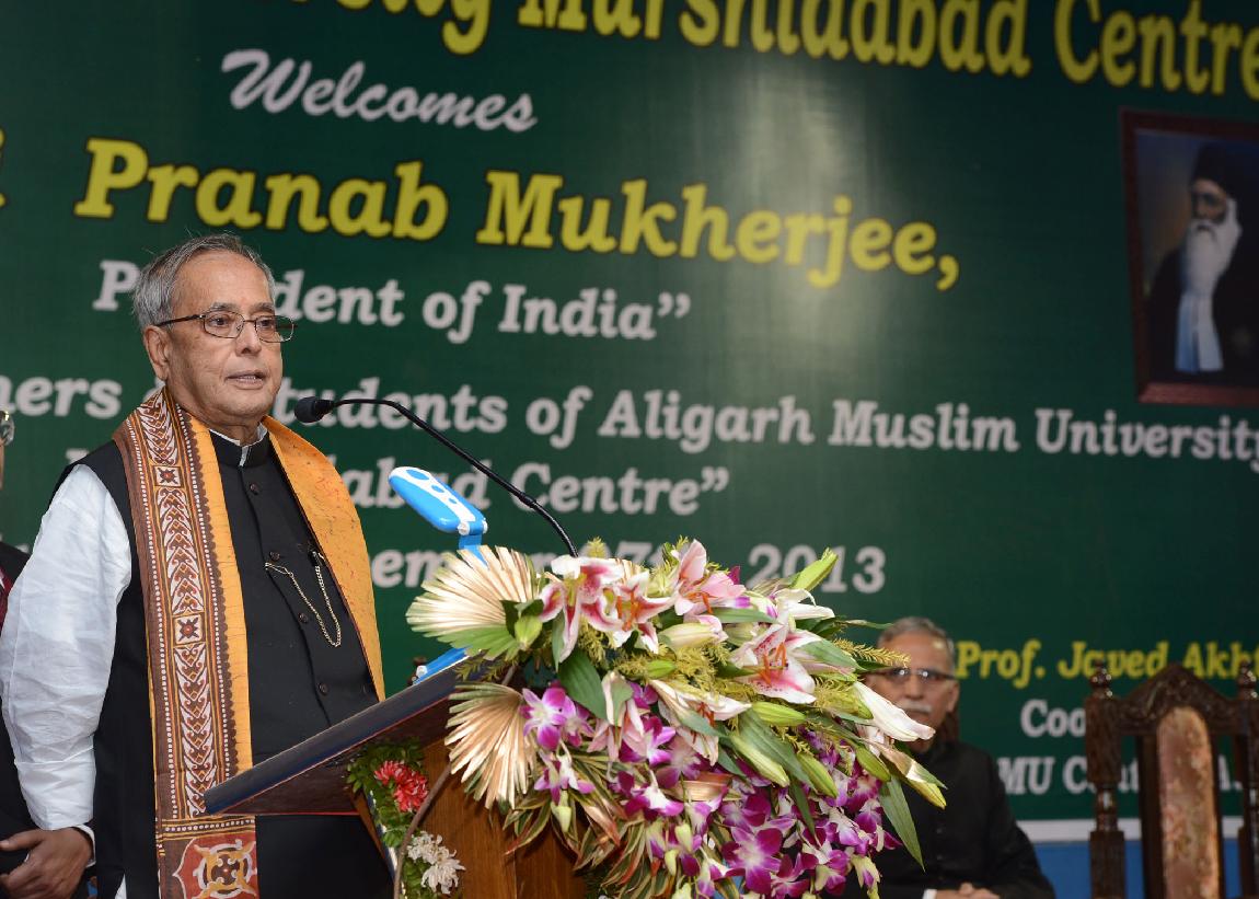 | Caption: | The President of India, Shri Pranab Mukherjee during a Function for Addressing the Teachers and Students of Aligarh Muslim University Centre (Murshidabad) at Jangipur in West Bengal on Dec 07, 2013 |