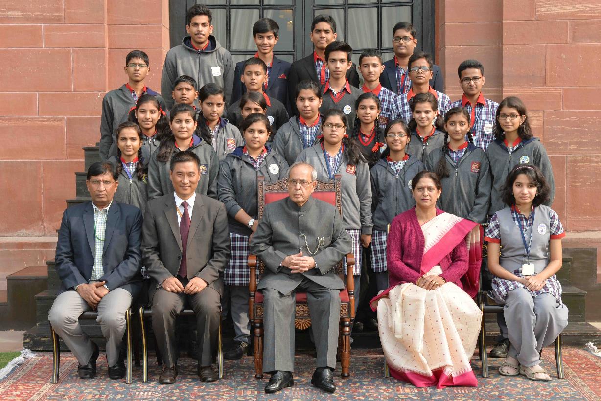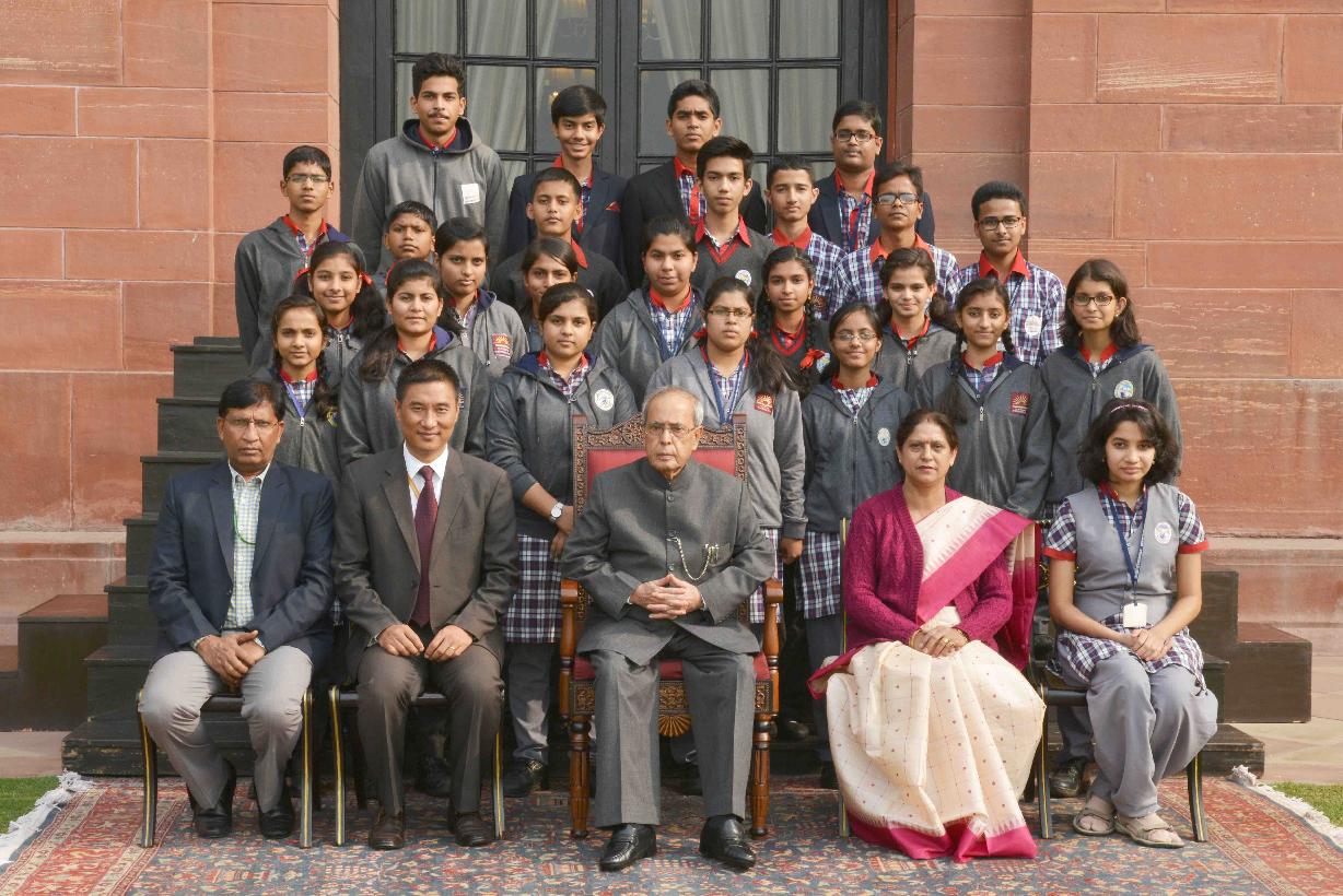 | Caption: | The President of India, Shri Pranab Mukherjee with the Students, Regional Level Toppers of All India Essay Competition for students of Kendriya Vidyalaya Sangathan, organised by XPD Division Ministry of External Affairs, at Rashtrapati Bhavan on December 10, 2015. |