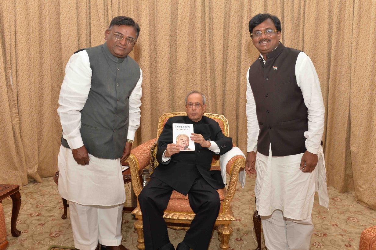 | Caption: | The President of India, Shri Pranab Mukherjee meeting with Dr. G. Vivekanand, Ex-MP (LS) with others, at Rashtrapati Nilayam, Bolarum, in Secunderabad on December 19, 2015. |