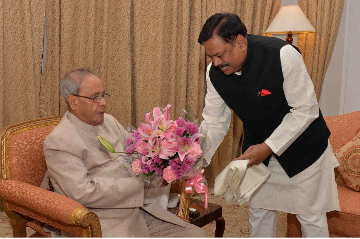 | Caption: | The President of India, Shri Pranab Mukherjee meeting with Shri Girish Kumar Sanghee, at Rashtrapati Nilayam, Bolarum, in Secunderabad on December 21, 2015. |