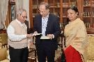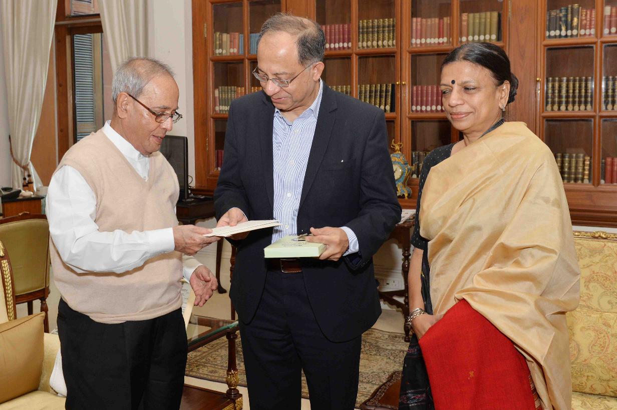 | Caption: | The President of India, Shri Pranab Mukherjee meeting with Smt. & Shri Kaushik Basu, at Rashtrapati Bhavan on December 18, 2015. |