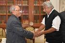 | Caption: | The President of India, Shri Pranab Mukherjee being greeted by the Chief Minister of Kerala, Shri Oommen Chandy and others, on the occasion of his 80th birthday, at Rashtrapati Bhavan on December 11, 2015 . |