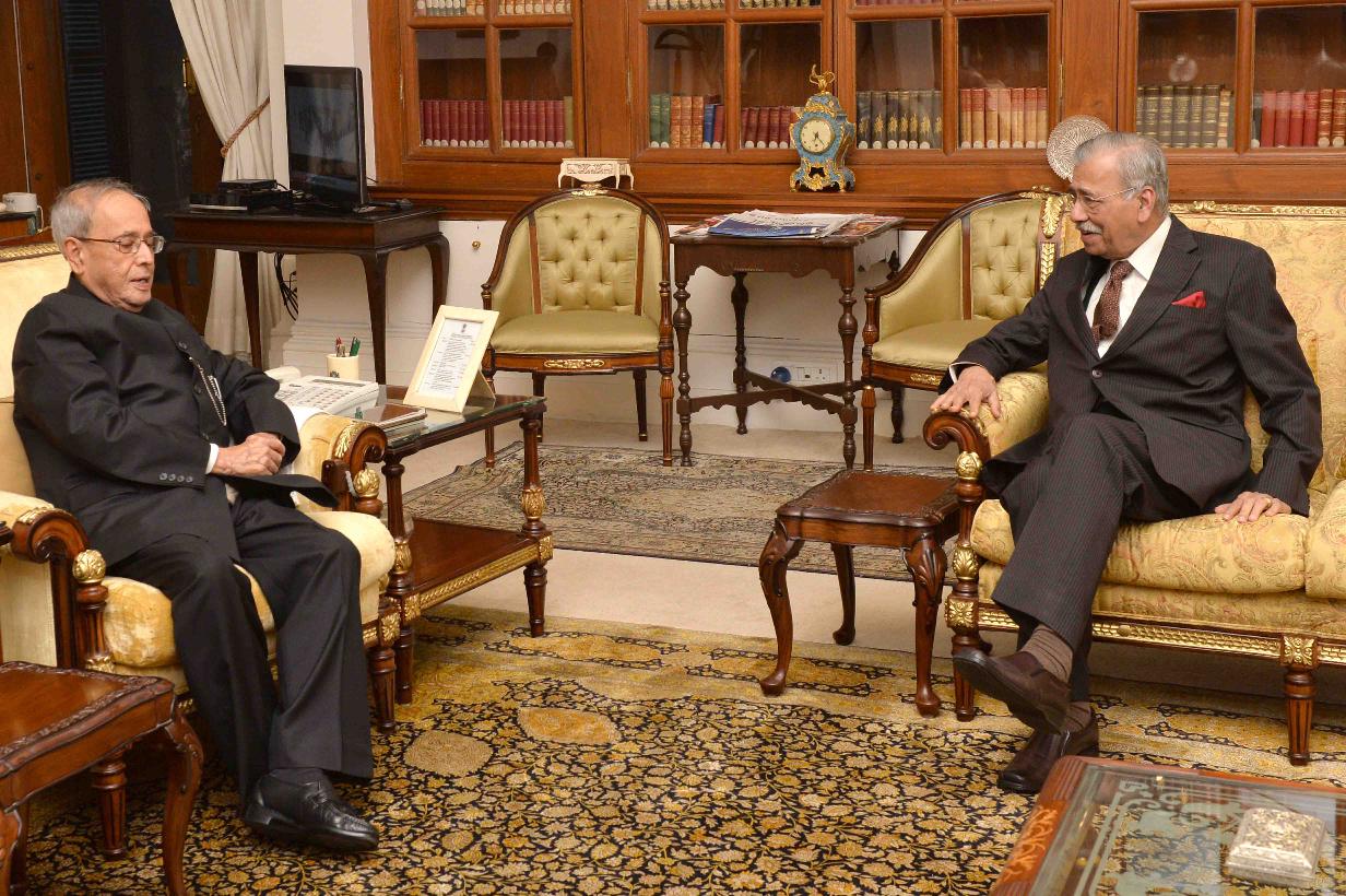 | Caption: | The President of India, Shri Pranab Mukherjee meeting with Shri Justice A.M. Ahmadi, former Chief Justice of India, at Rashtrapati Bhavan on February 22, 2016. |